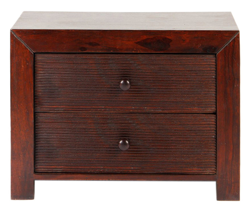 Alicia Solid Wood Bed Side Table With Two Drawers - Teak