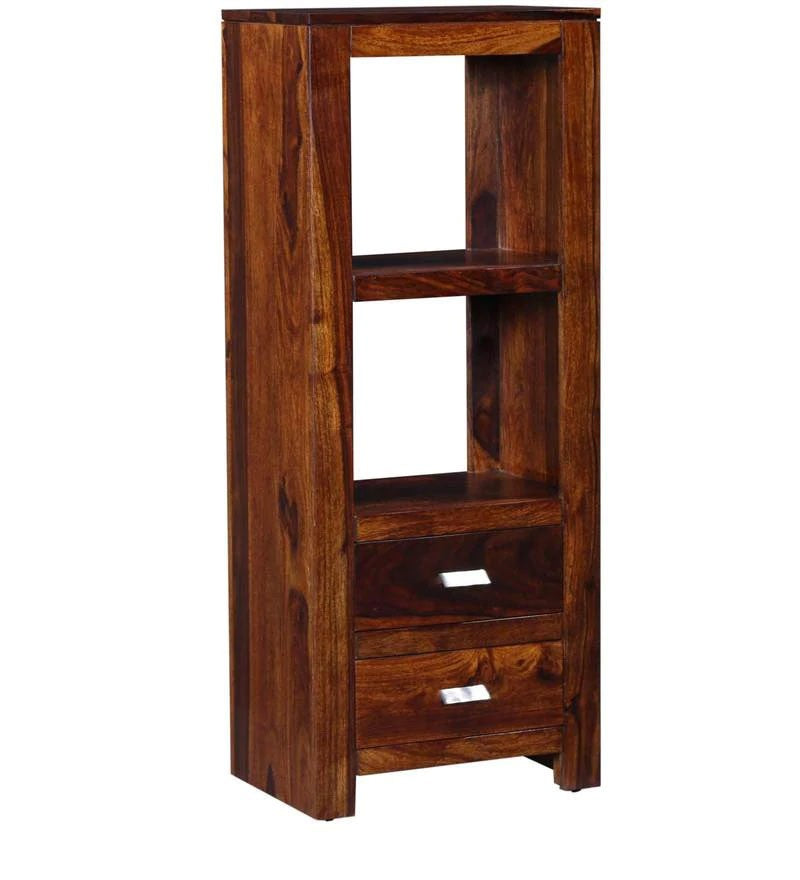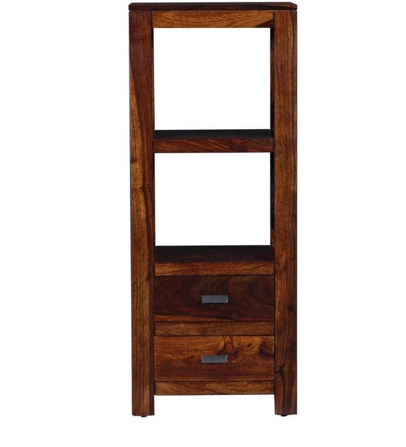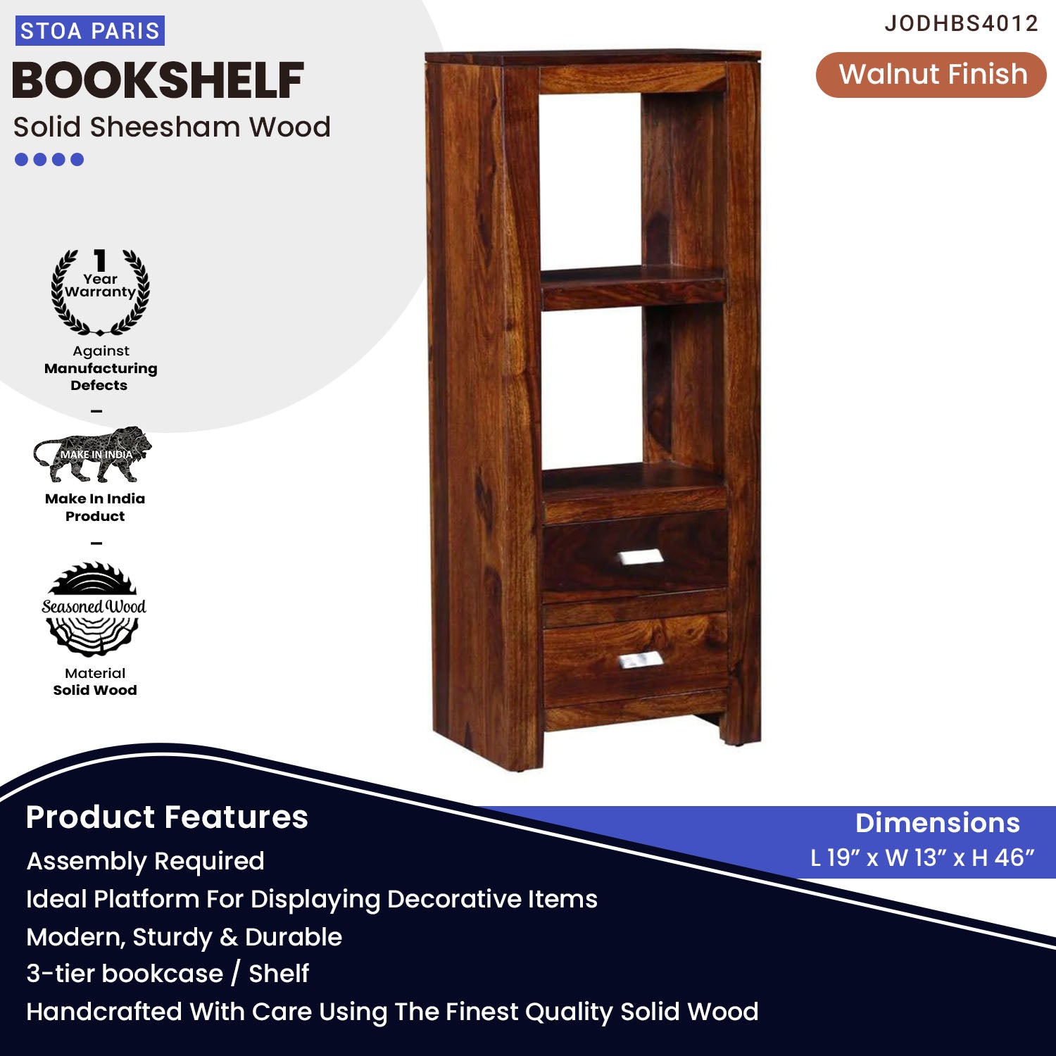 Angelo Bookshelf Storage Organizer With 2 Drawers And 2 Shelves In Walnut Polish Shade