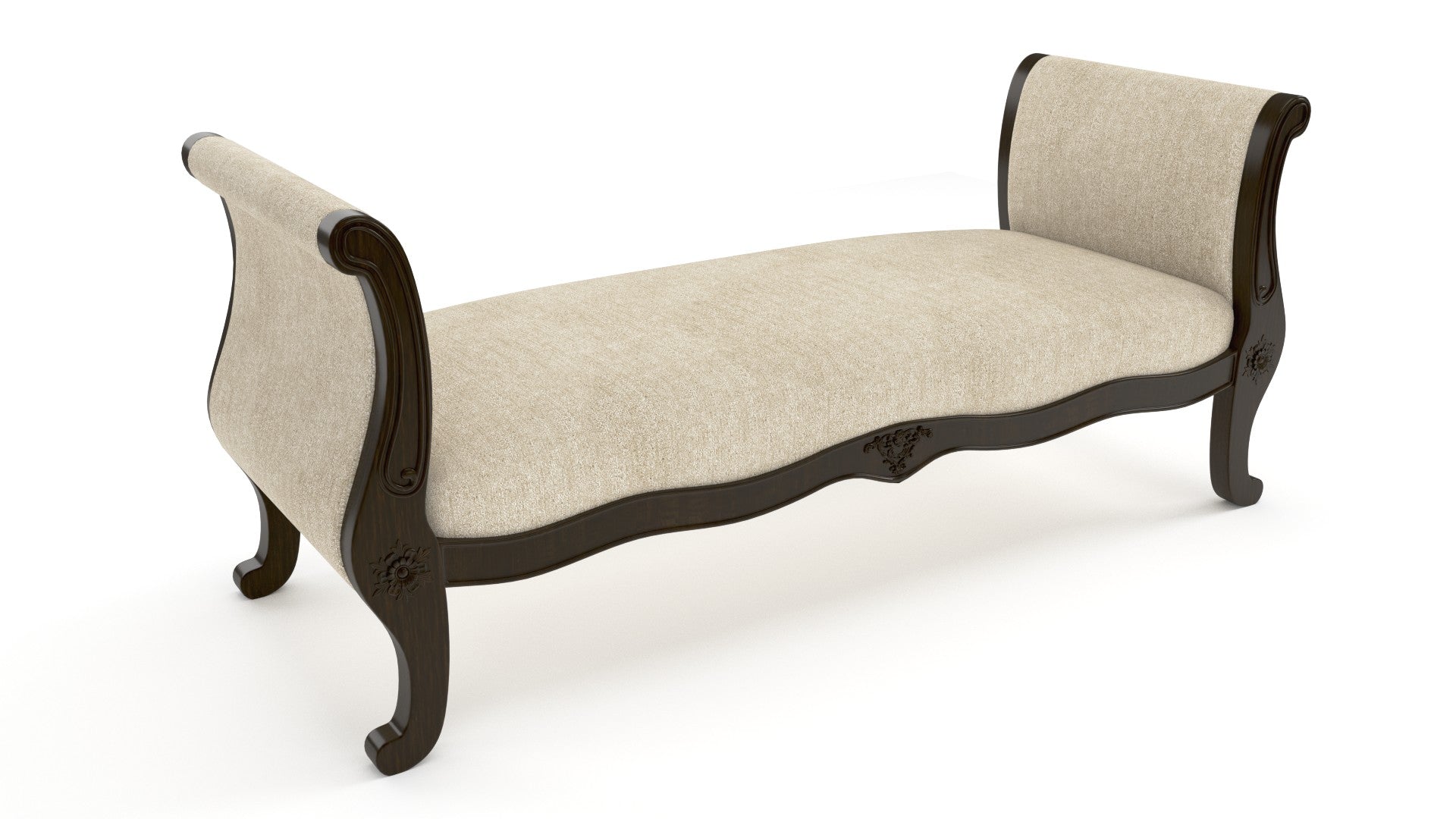 Arthur - Solid Wood Sofa Bench - Beige Fabric & Dark Walnut Polish