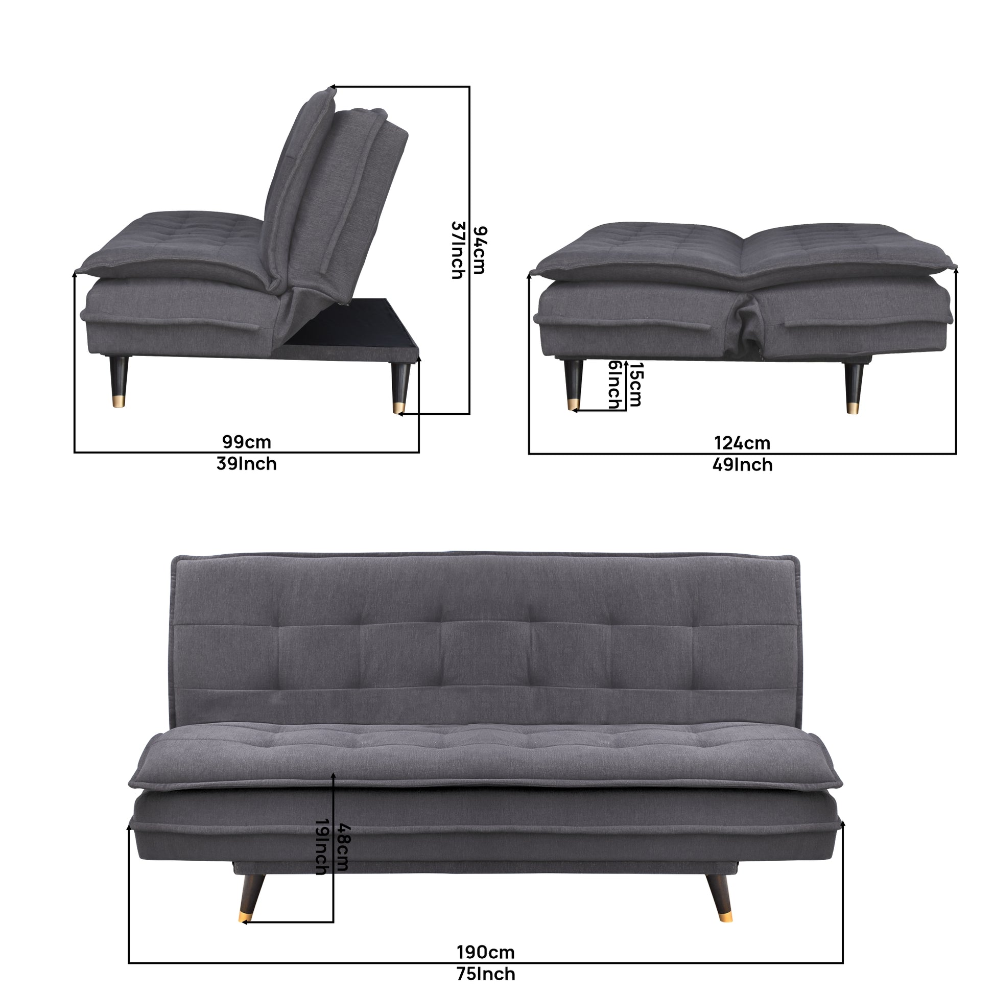 Ashbel 3 Seater Sofa Cum Bed- Grey