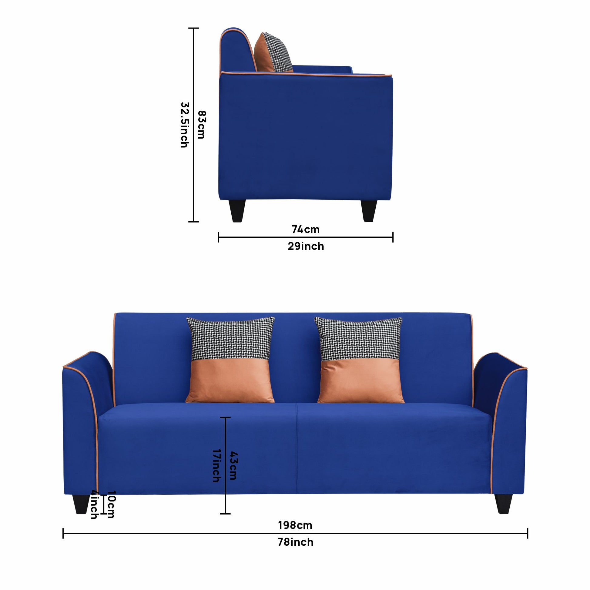 Beckett Cushion Back Fabric Sofa - Blue & Orange