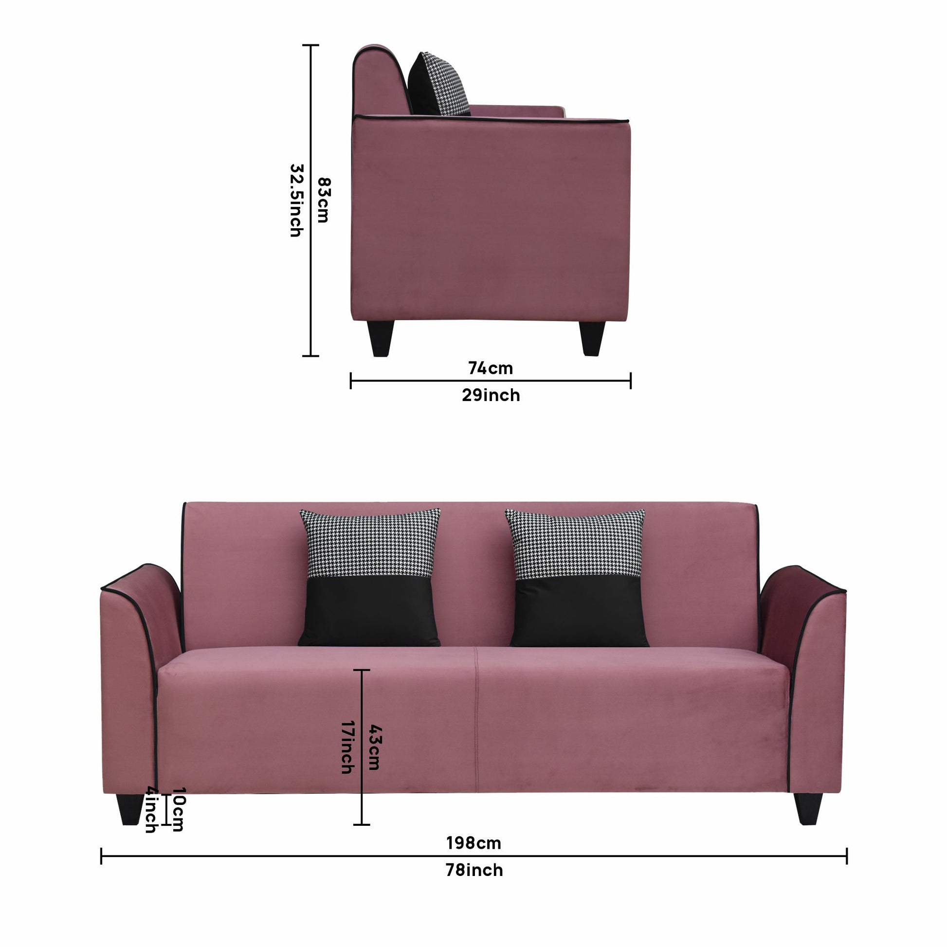 Beckett Cushion Back Fabric Sofa - Dark Pink & Black