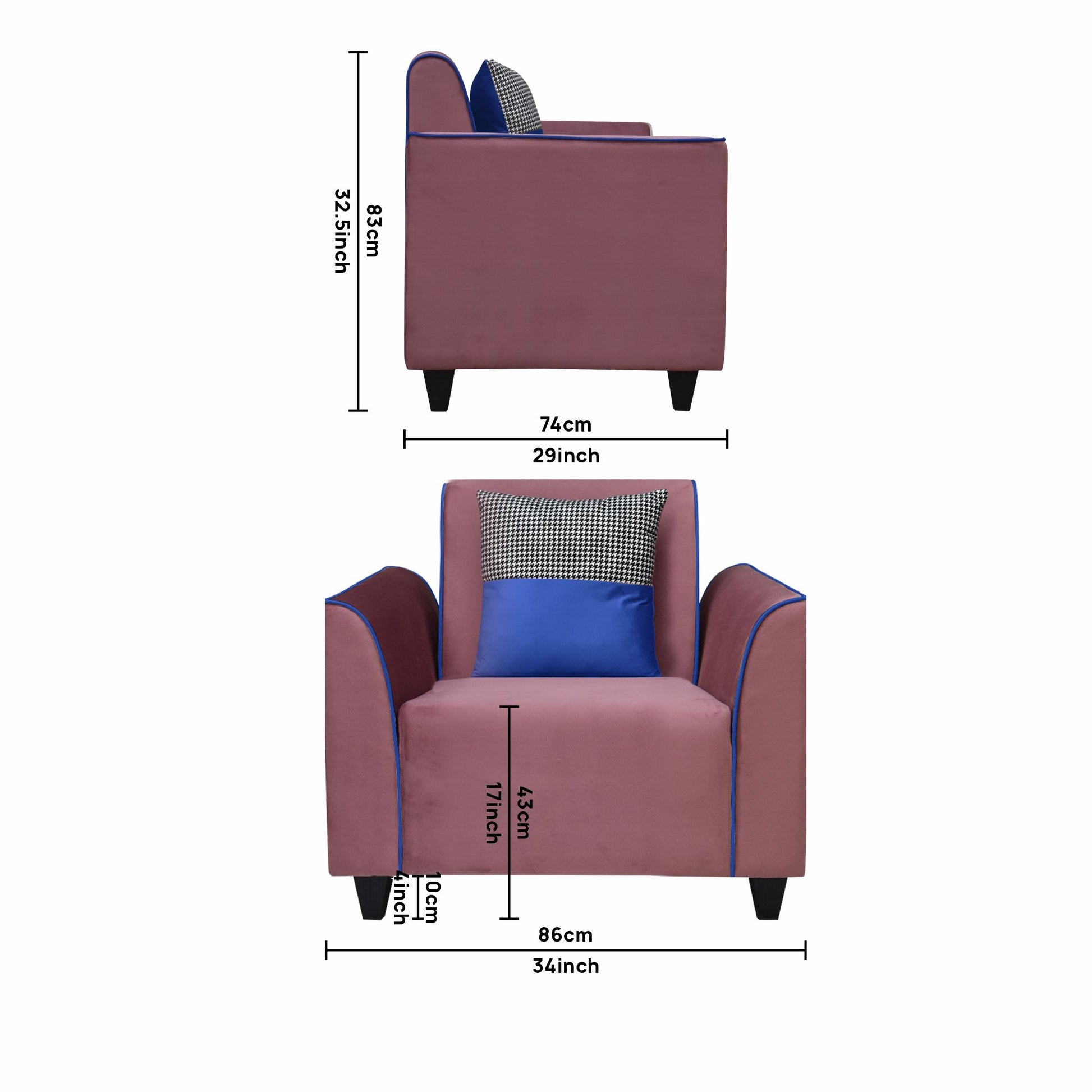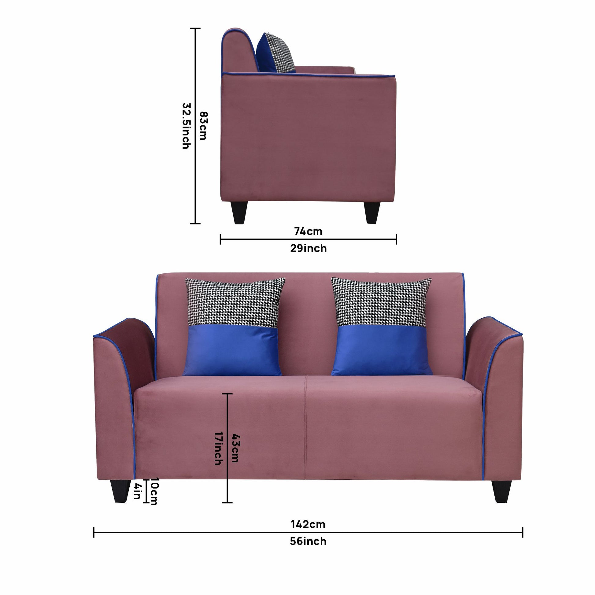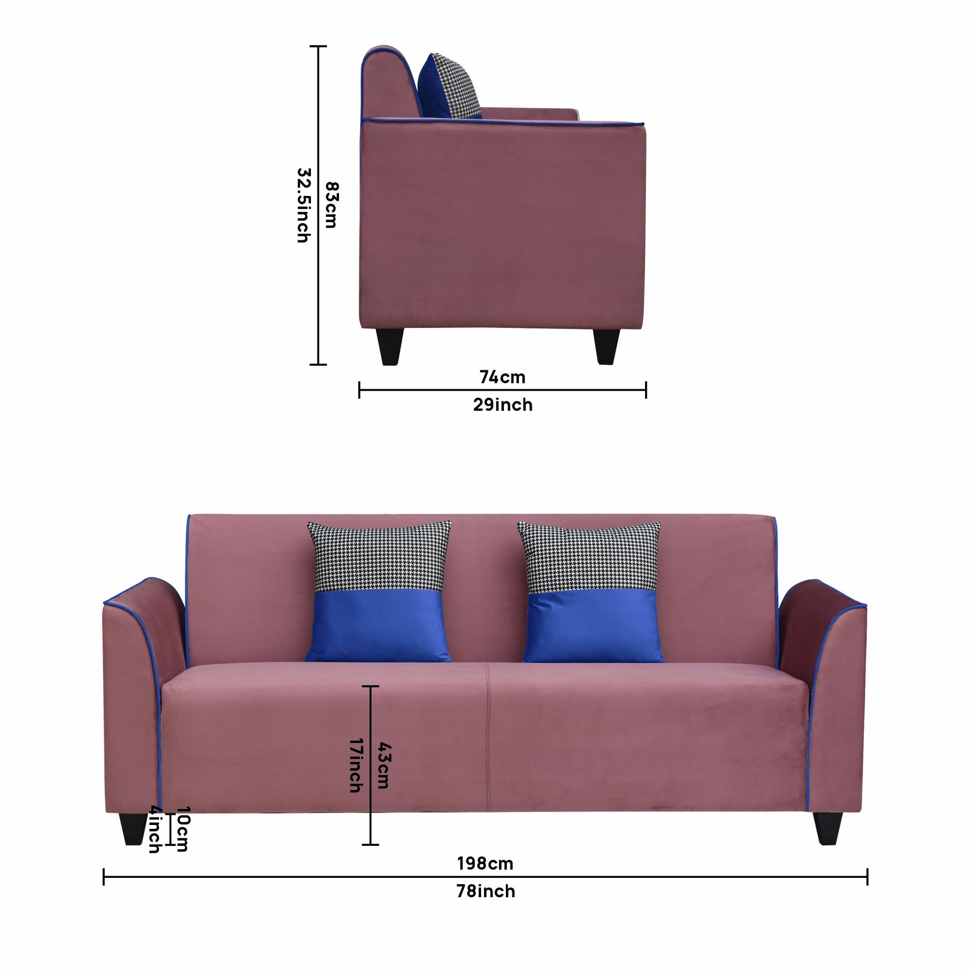 Beckett Cushion Back Fabric Sofa - Dark Pink & Blue