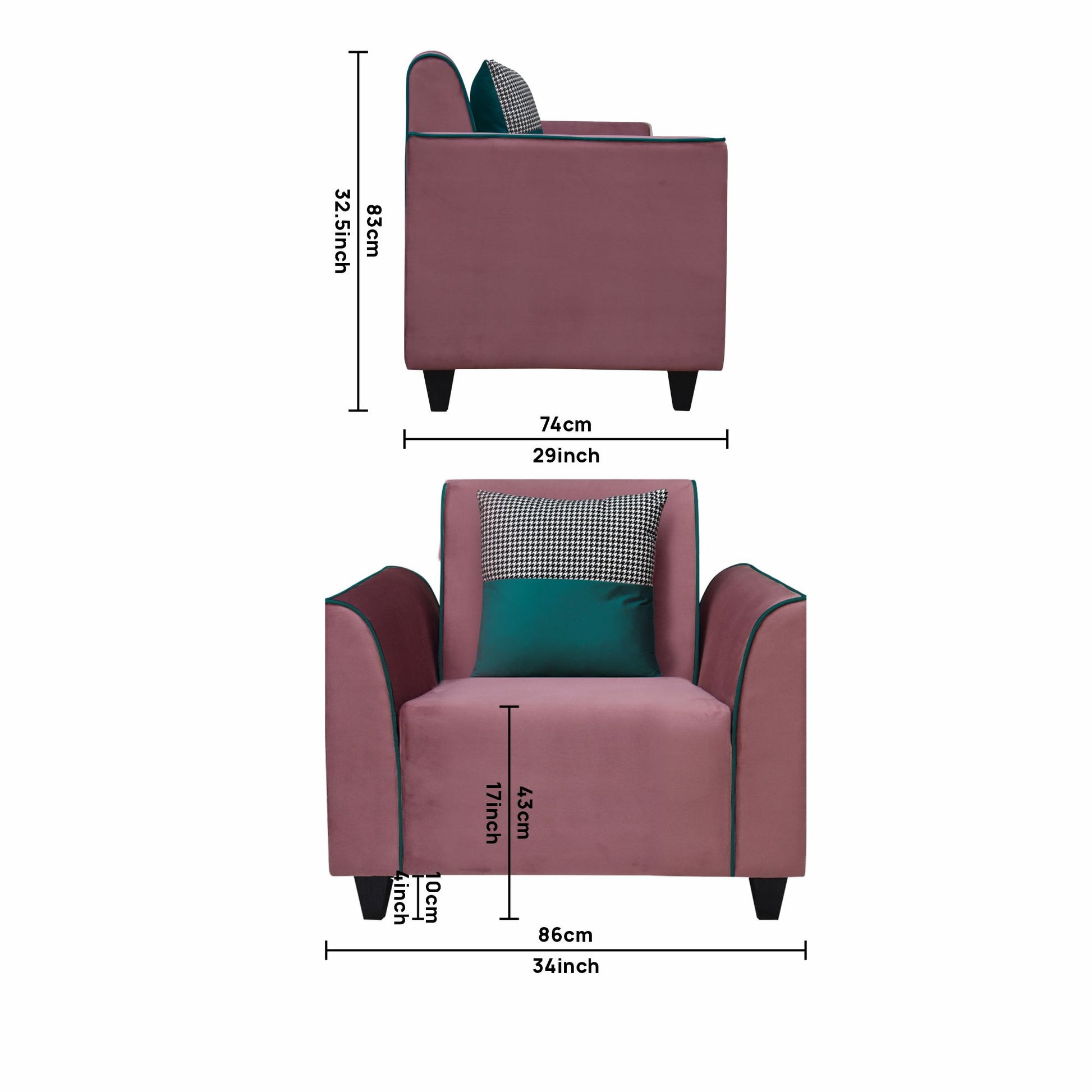 1 Seater : 86L x 74W x 84H (cms)