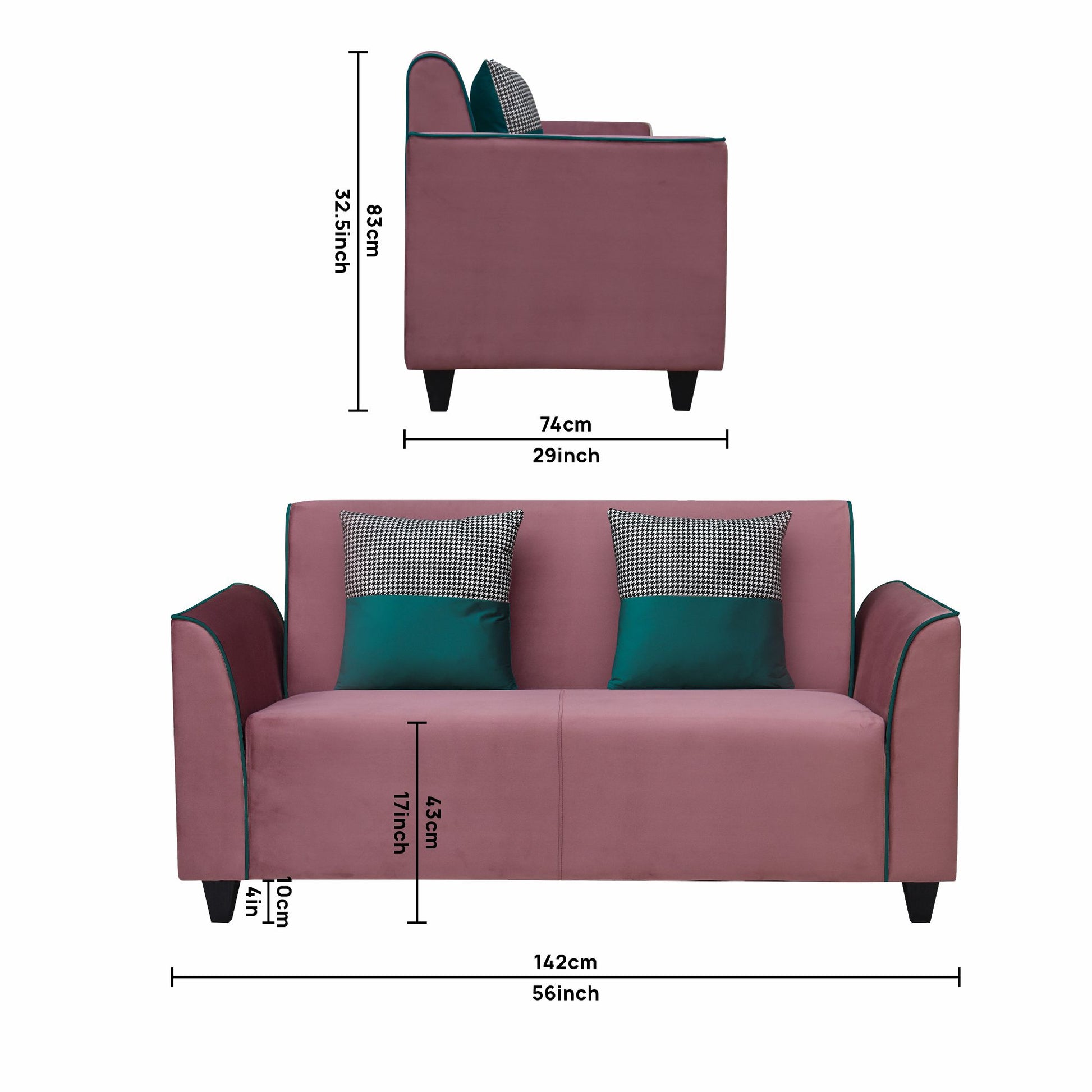 2 Seater : 142L x 74W x 84H (cms)