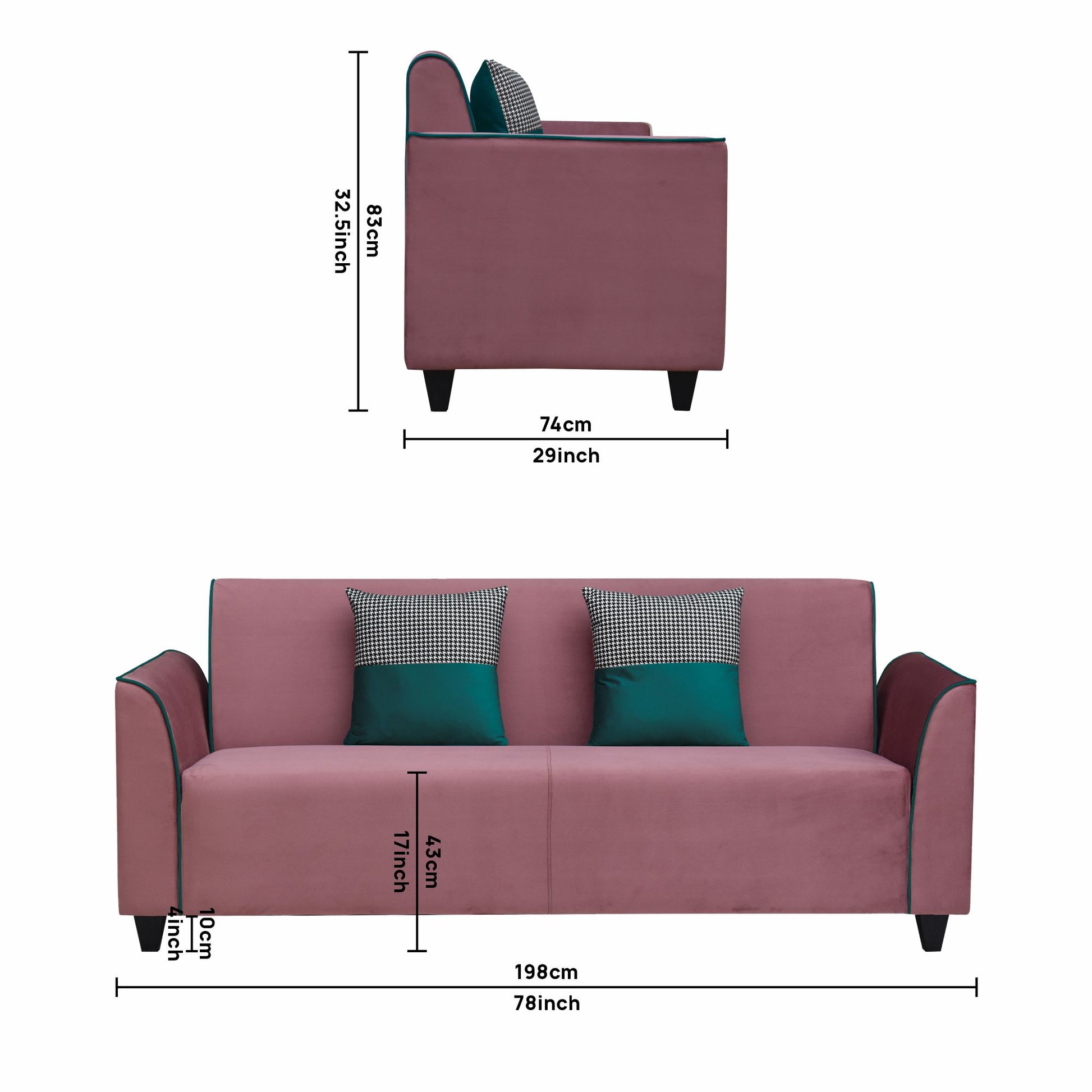3 Seater : 198L x 74W x 84H (cms)