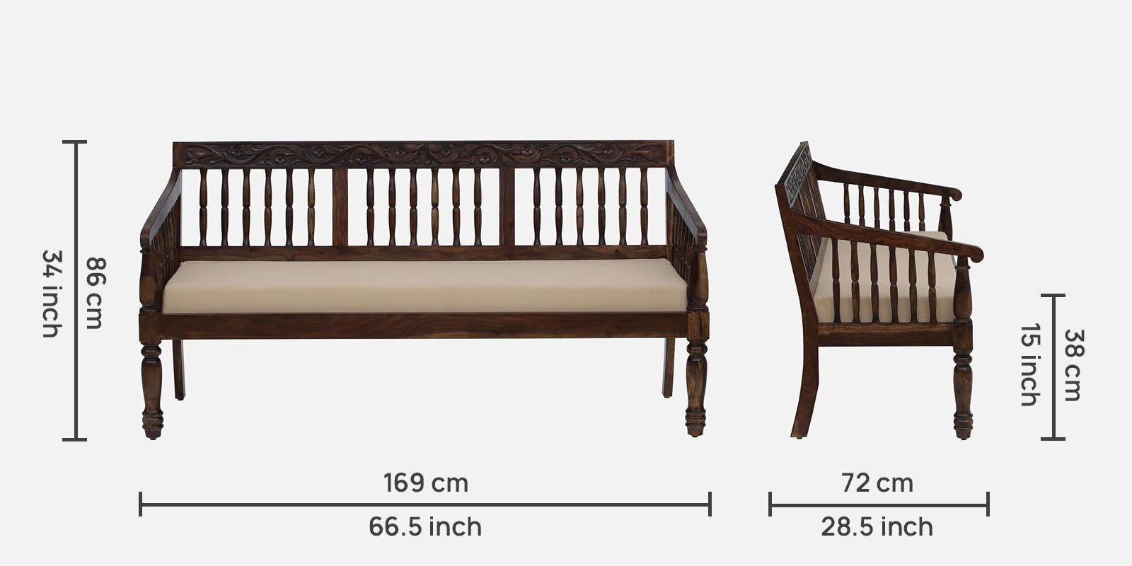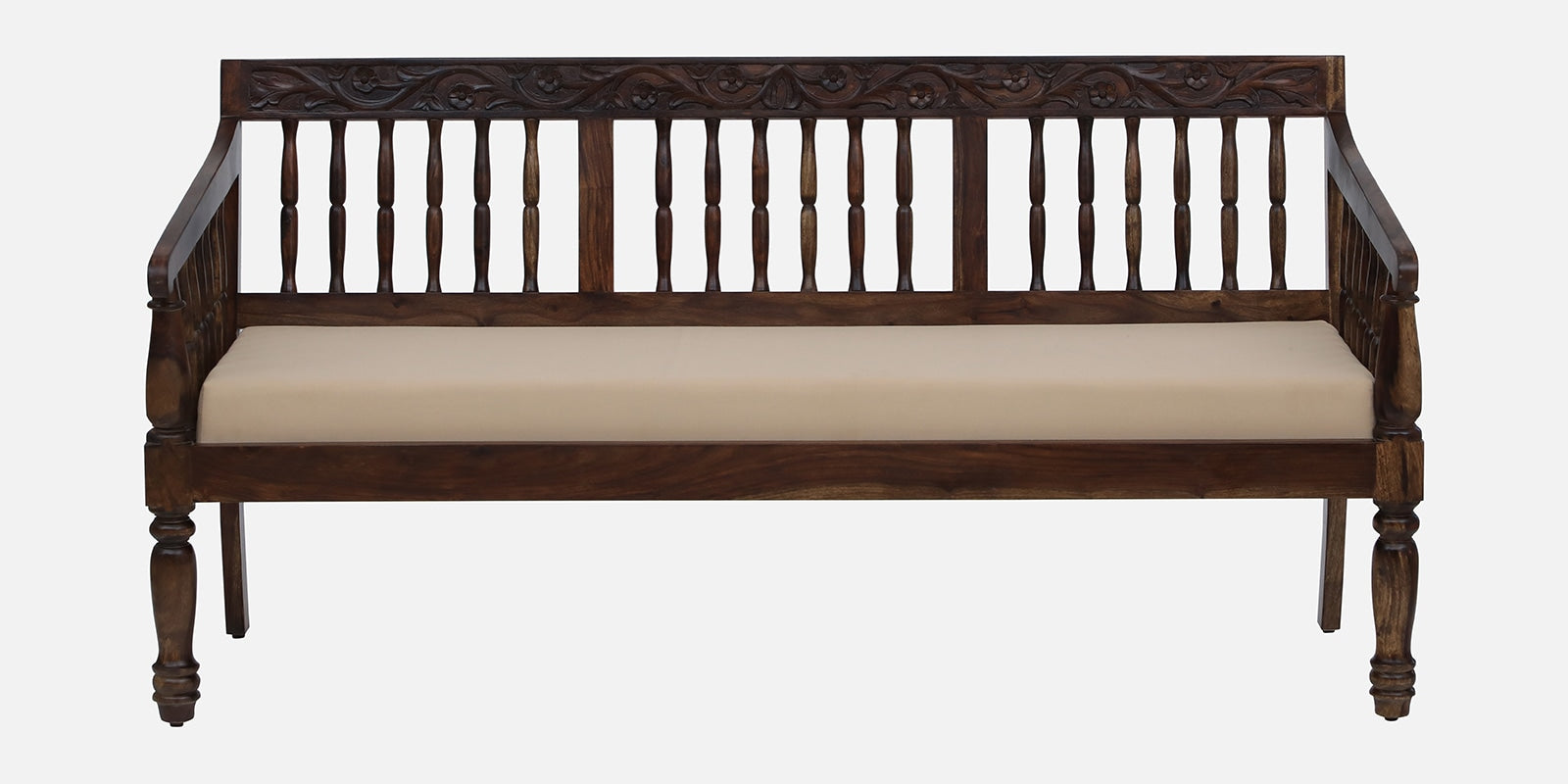 Bline - Sheesham Wood 3 Seater Sofa In Teak Finish - Cream