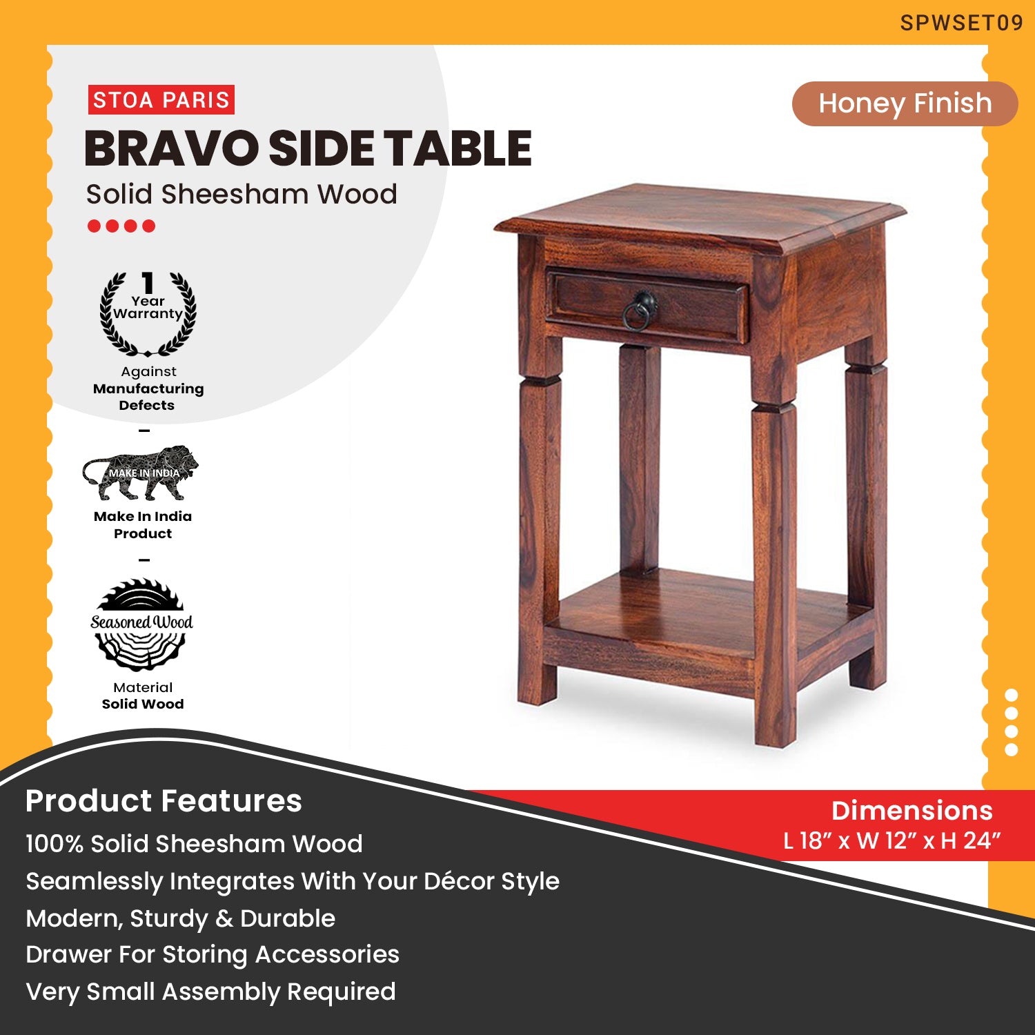 Bravo - Solid Sheesham Wood Side Table With Drawer - Teak