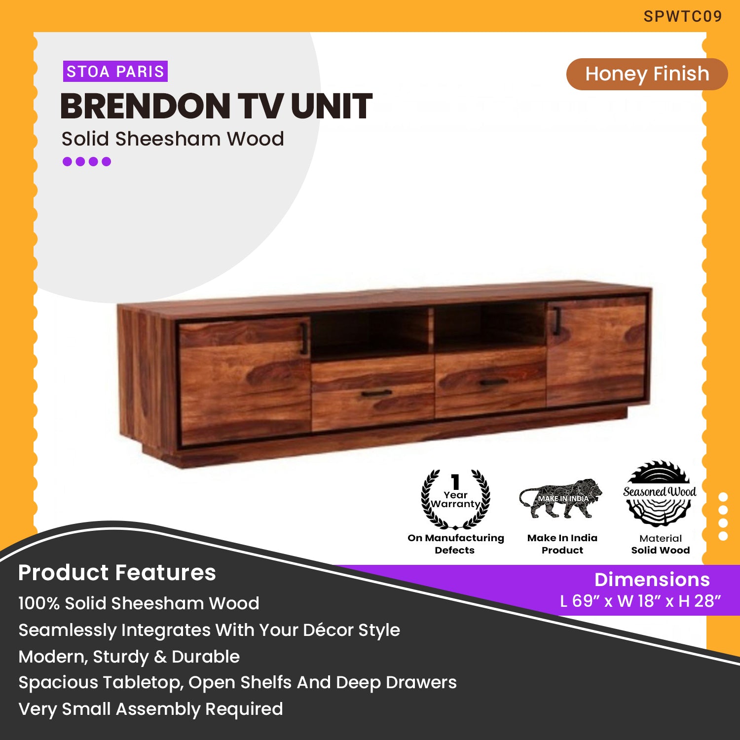 Brendon - Sheesham Wood TV Unit With Drawers - Honey