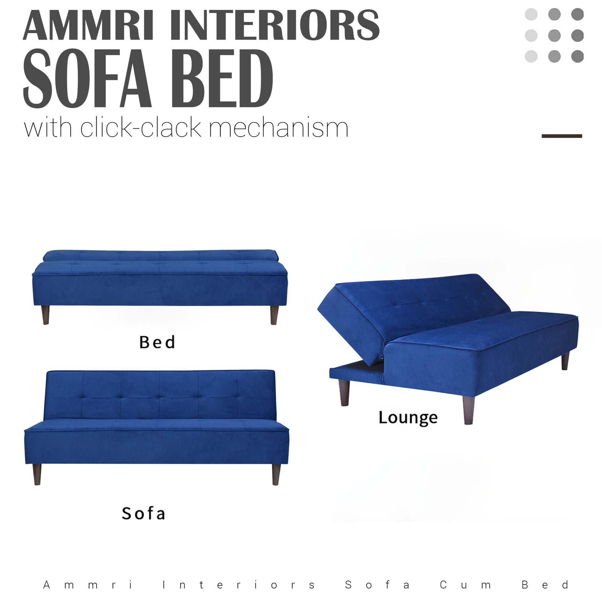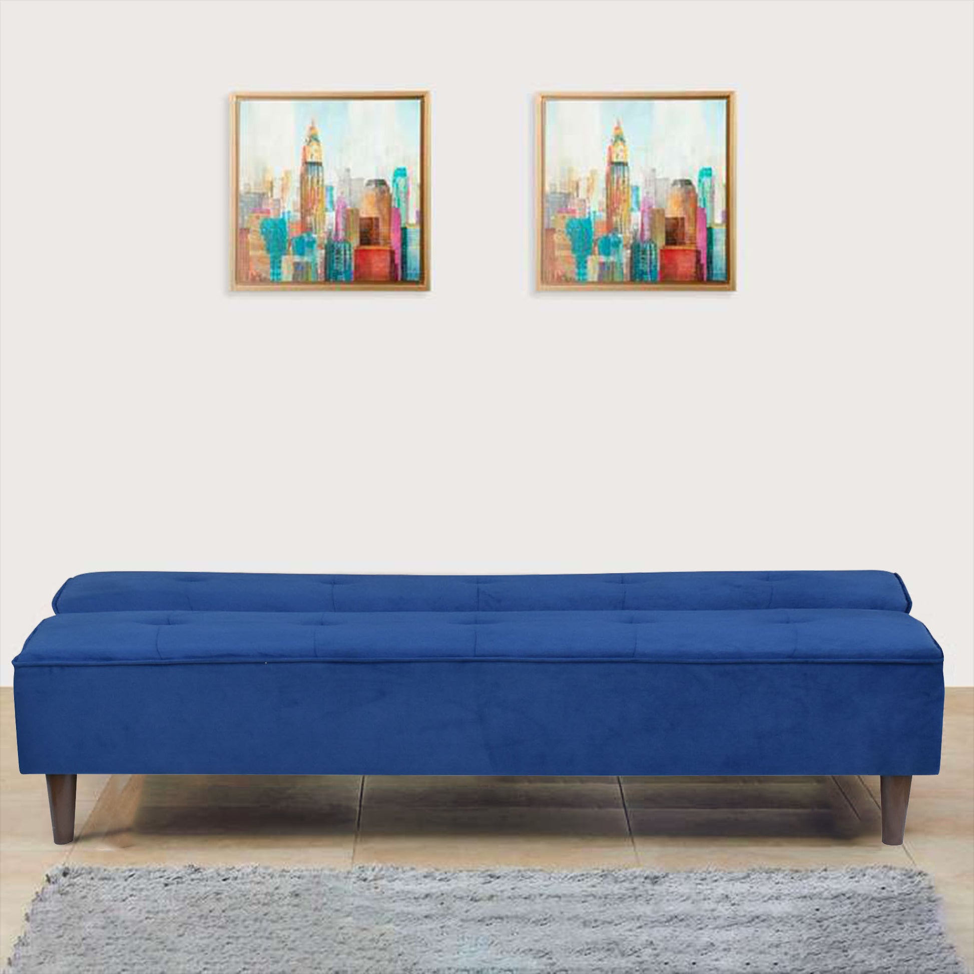 Camron Fully Upholstered 3 Seater Single Sofa Cum Bed - Blue