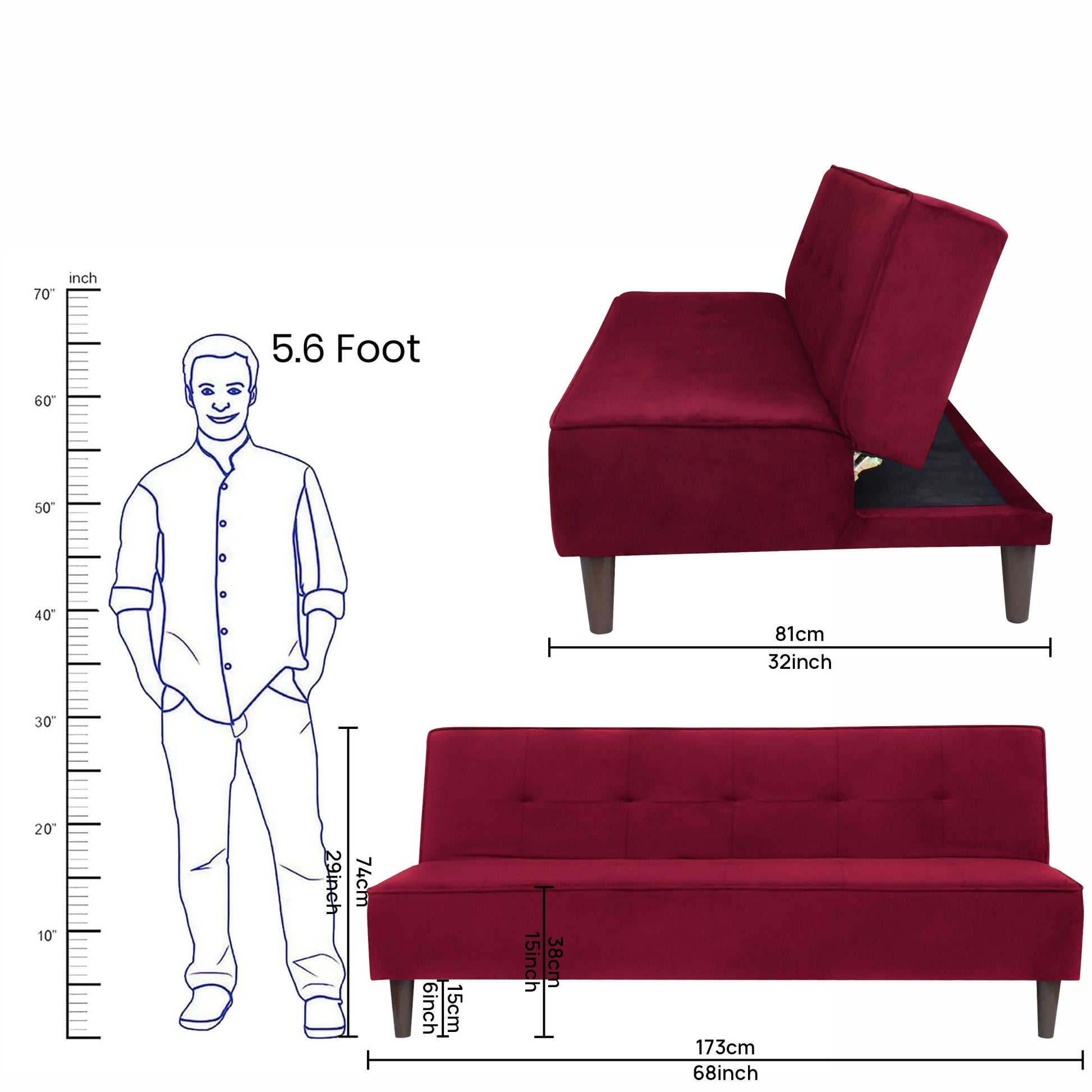 Camron Fully Upholstered 3 Seater Single Sofa Cum Bed - Maroon