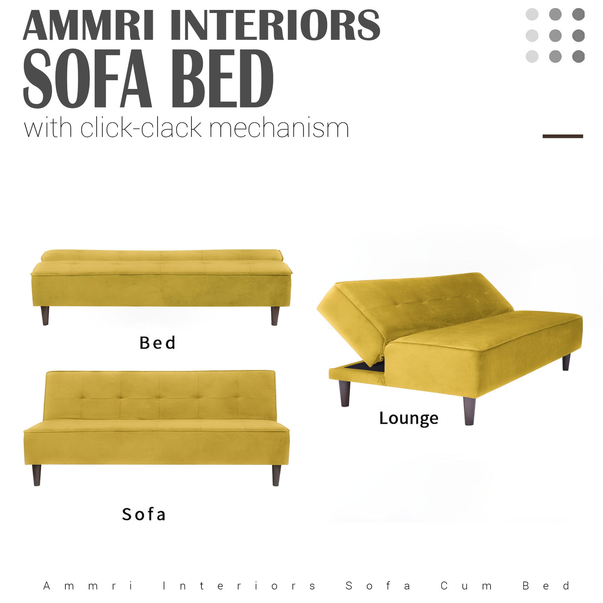 Camron Fully Upholstered 3 Seater Single Sofa Cum Bed - Yellow