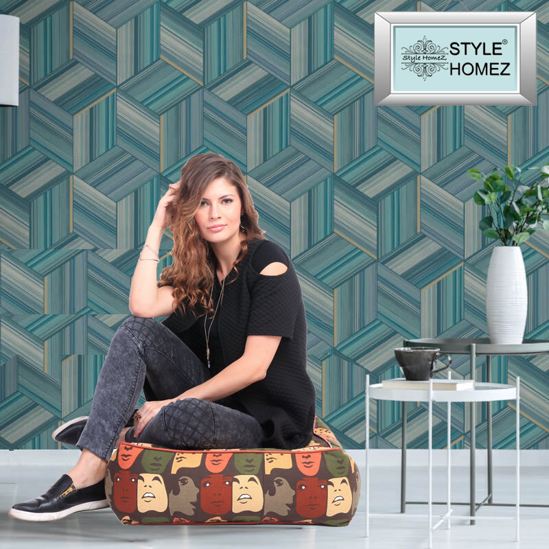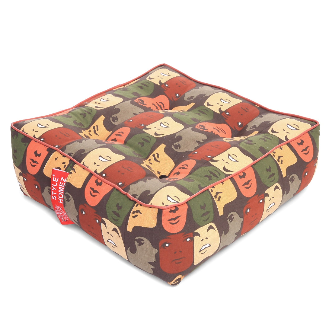 Canvas Abstract Square Floor Cushion With Beans - Large Size