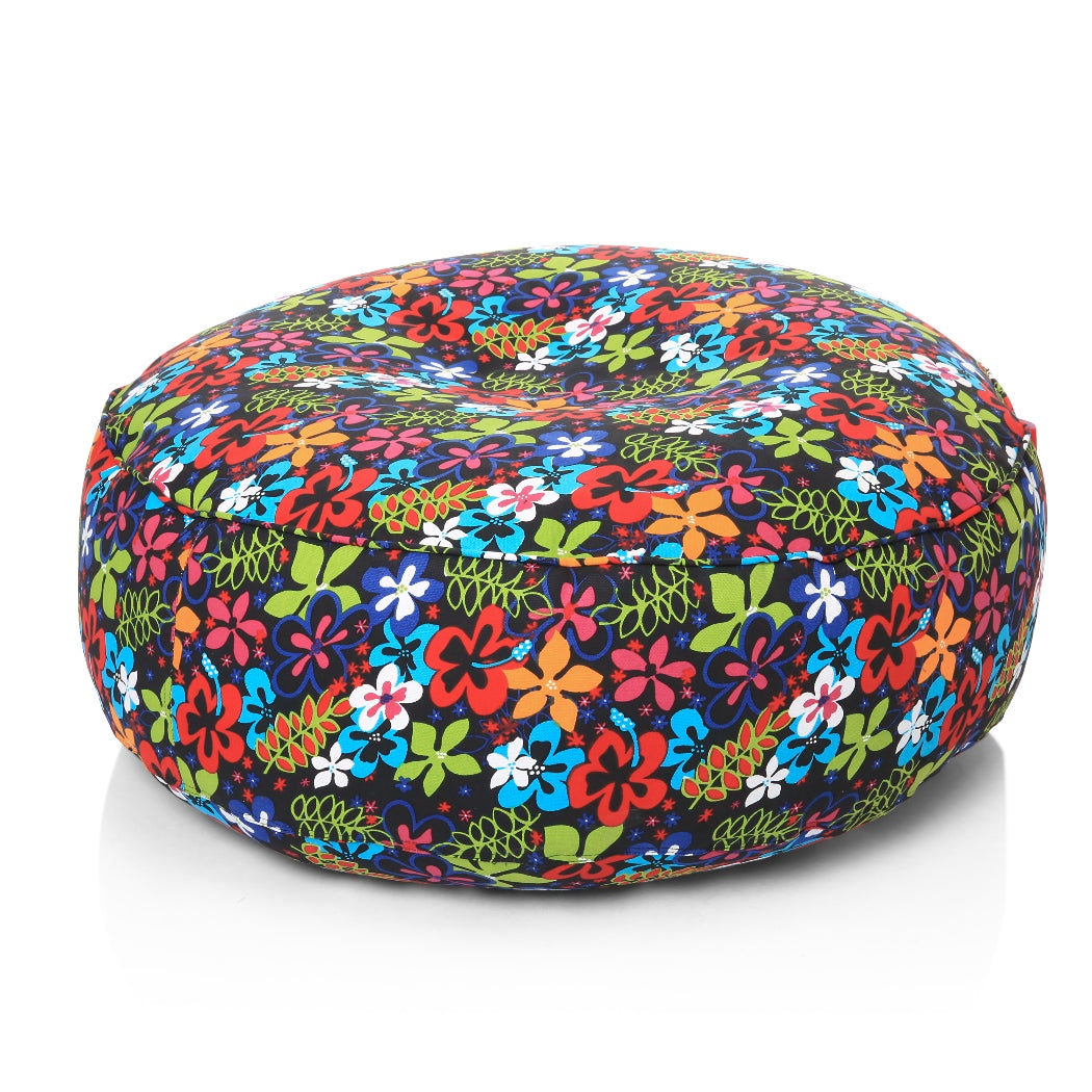 Canvas Floral Printed Round Bean Filled Floor Cushion - XL Size