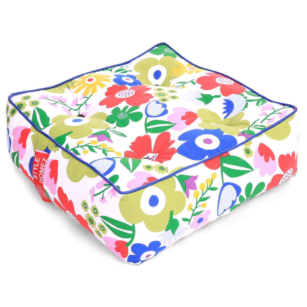 Canvas Floral Square Floor Cushion Filled With Beans - Large Size