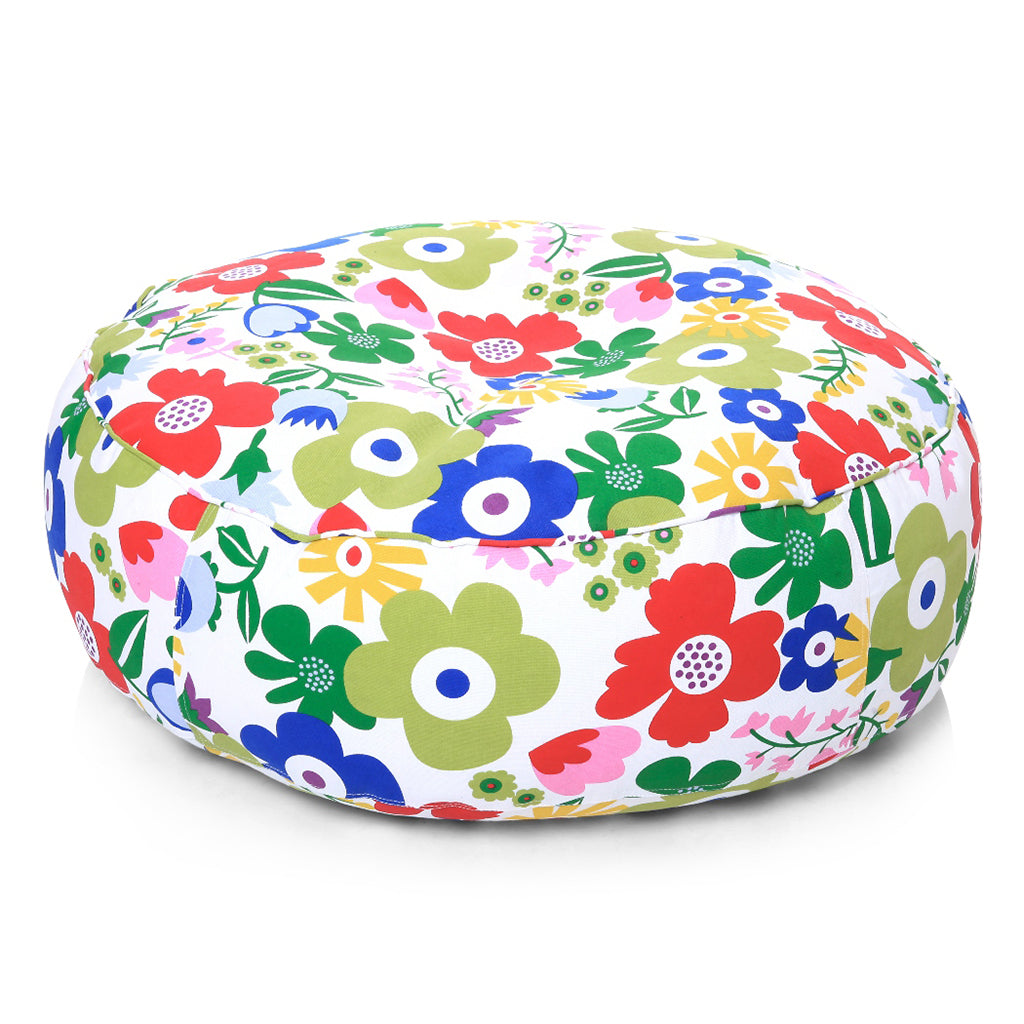 Canvas FloralPrinted Round Floor Cushion With Beans - XL Size
