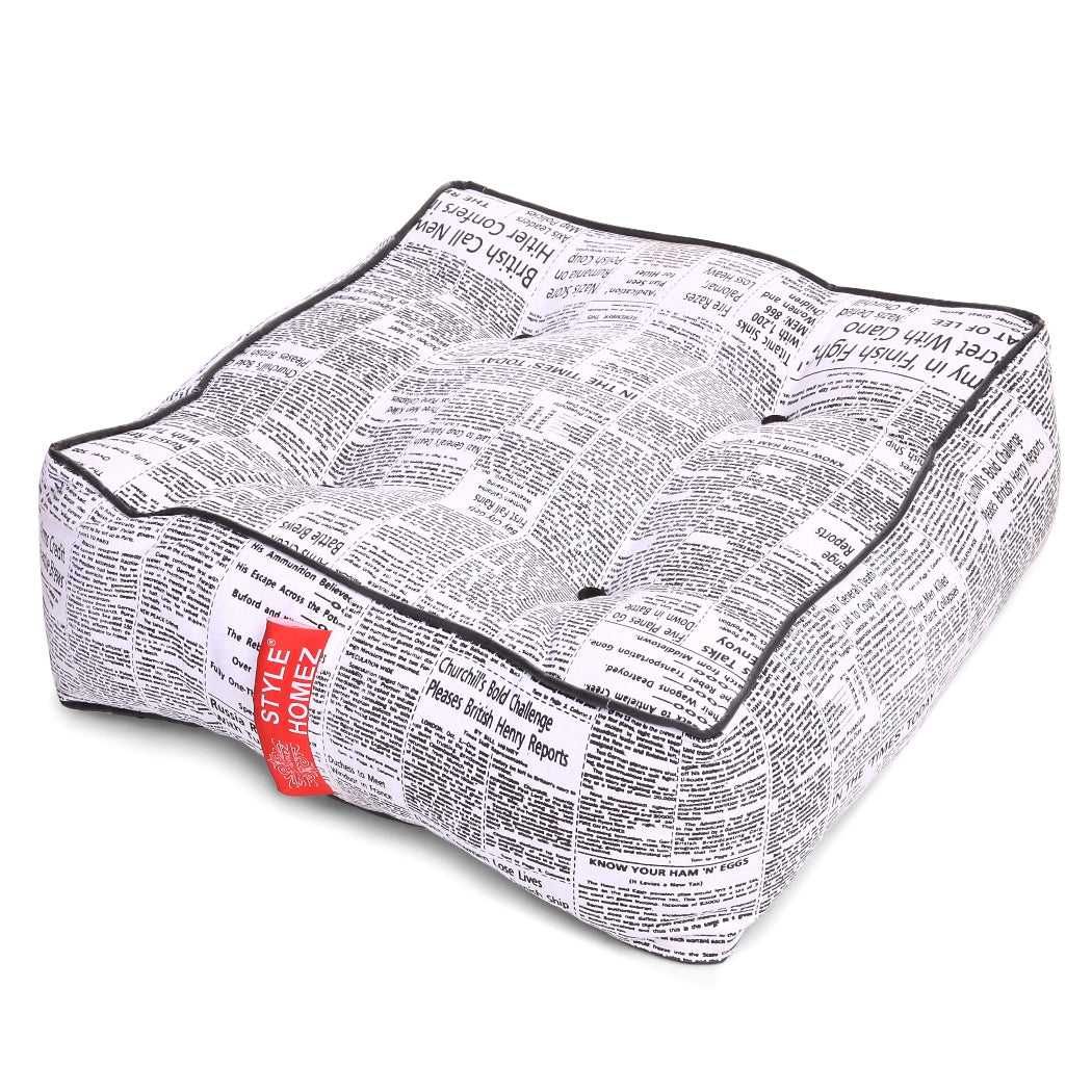 Canvas Newspaper Square Floor Cushion With Beans - Large Size
