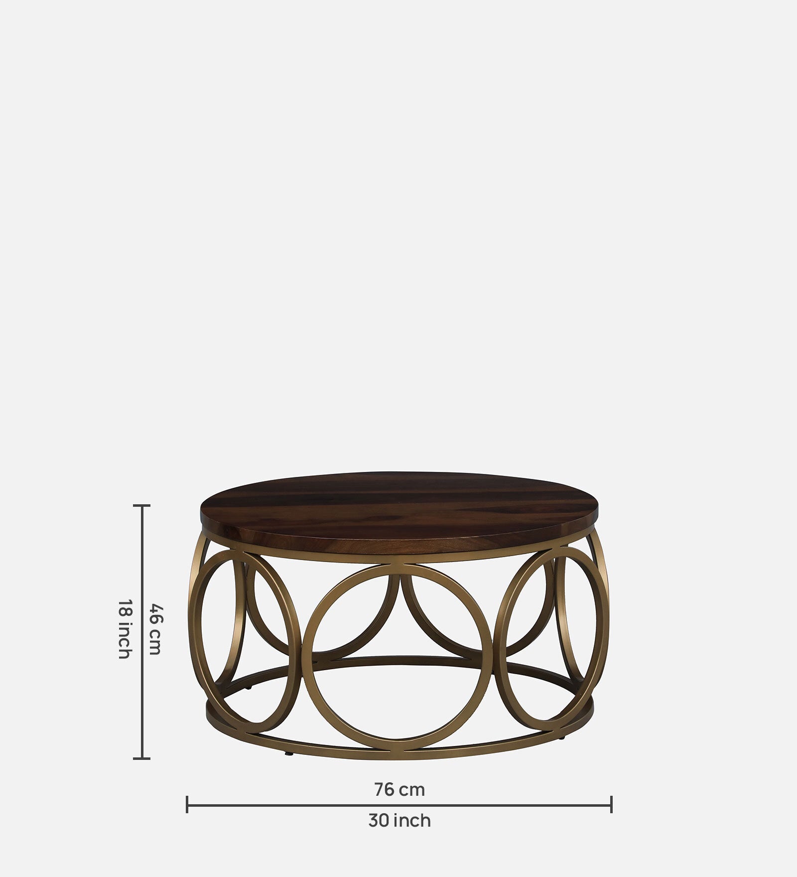 Cart Metal Coffee Table In Matte Gold Polish Shade & Solid Wood Top