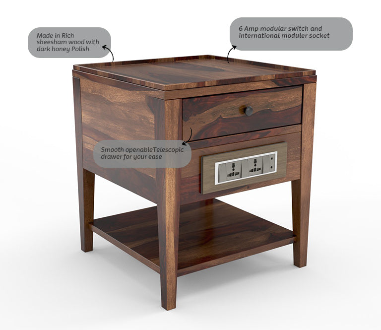 Classic Recharge Side Table In Sheshaam Wood - Teak