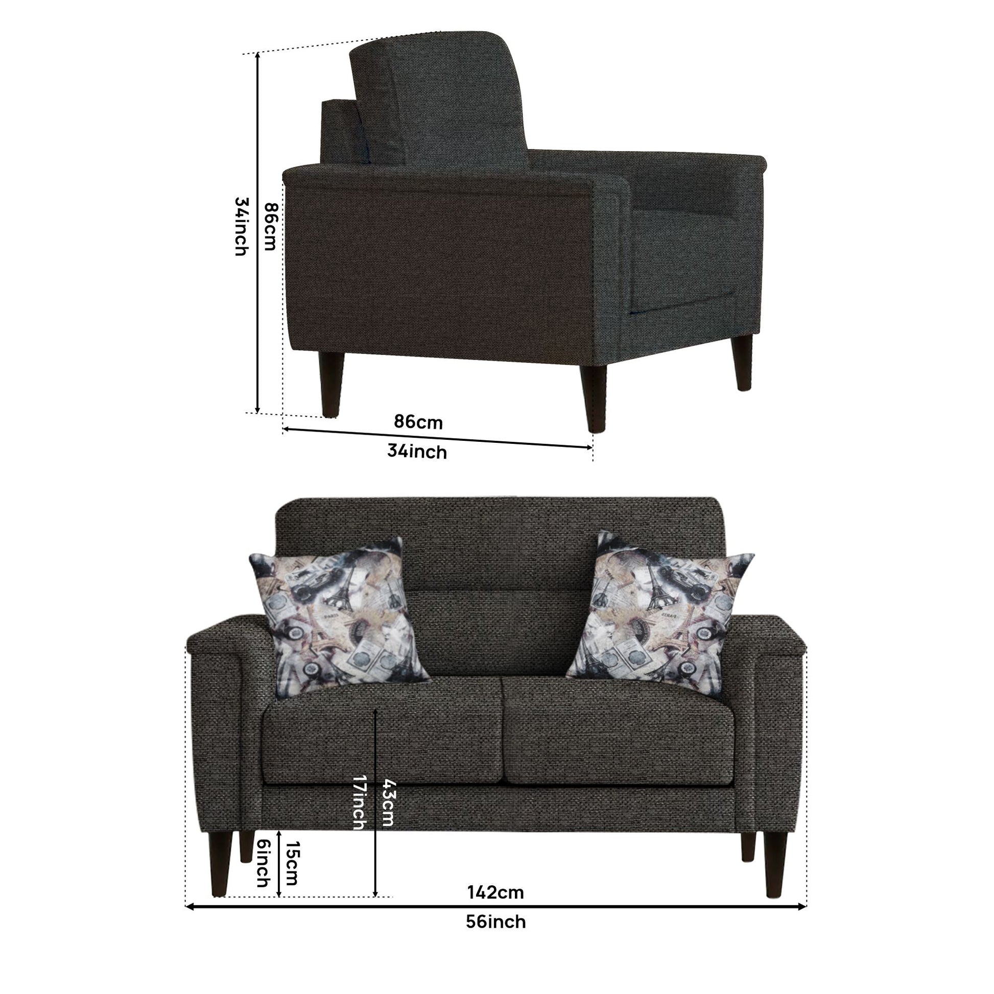 2 Seater : 142L x 86W x 86H (cms)