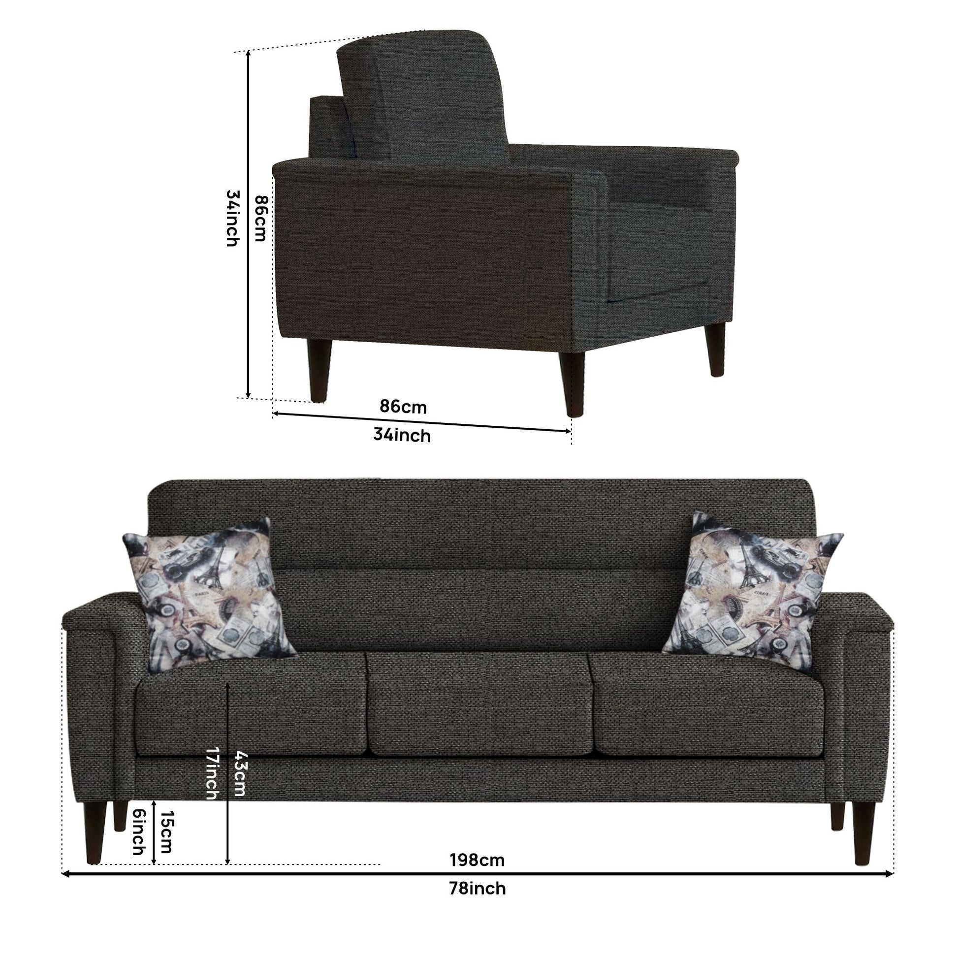 3 Seater : 198L x 86W x 86H (cms)