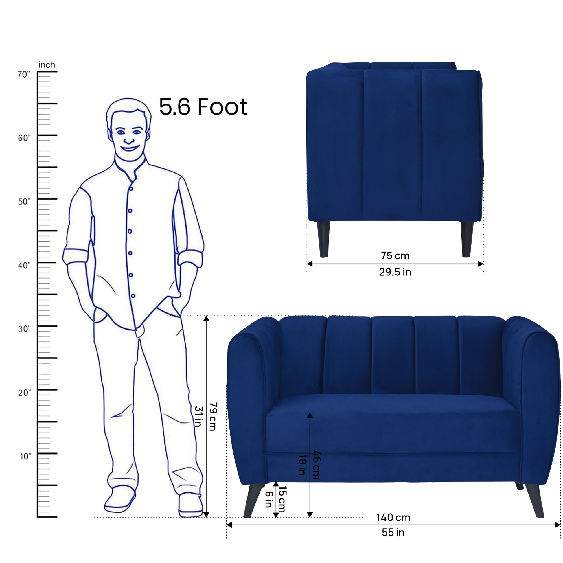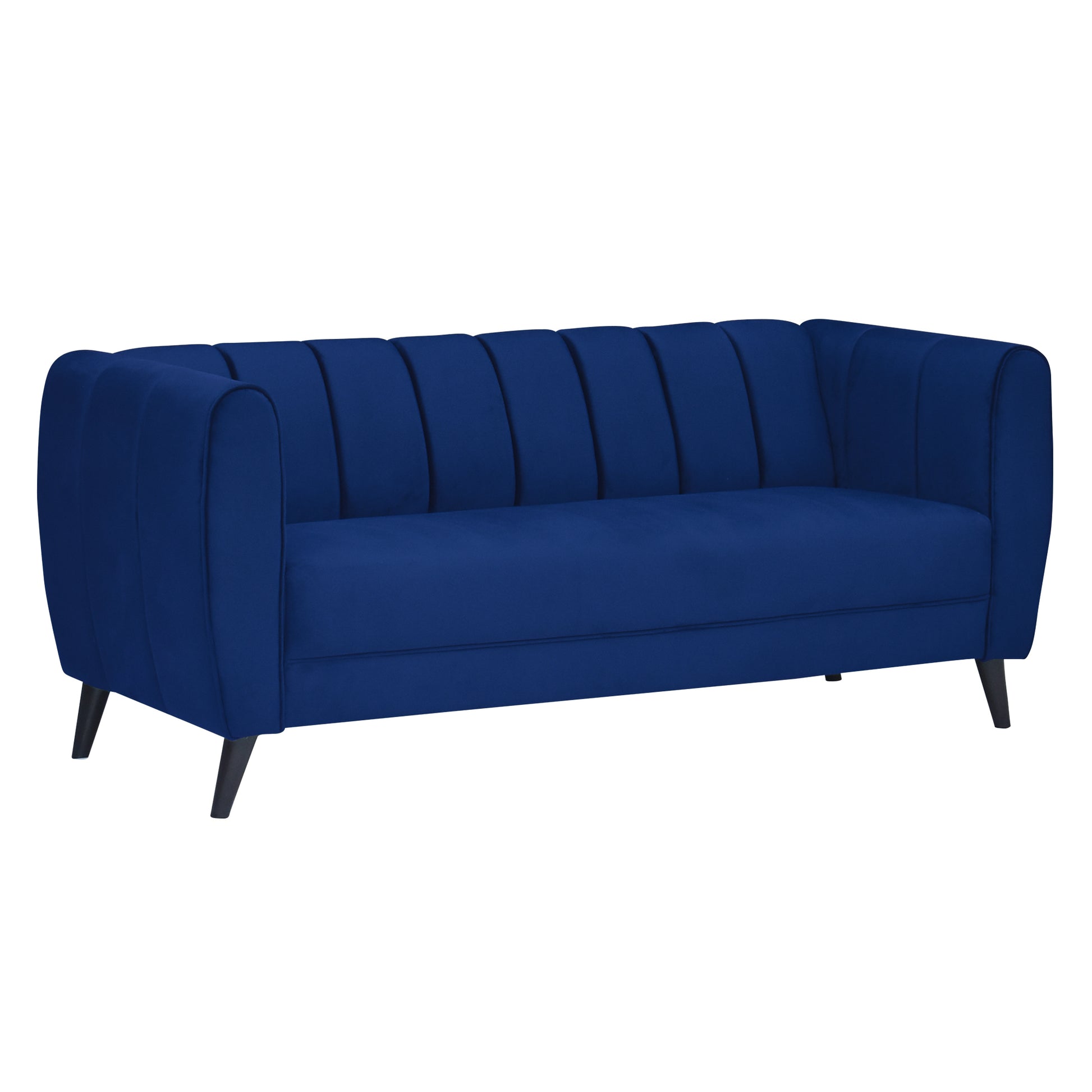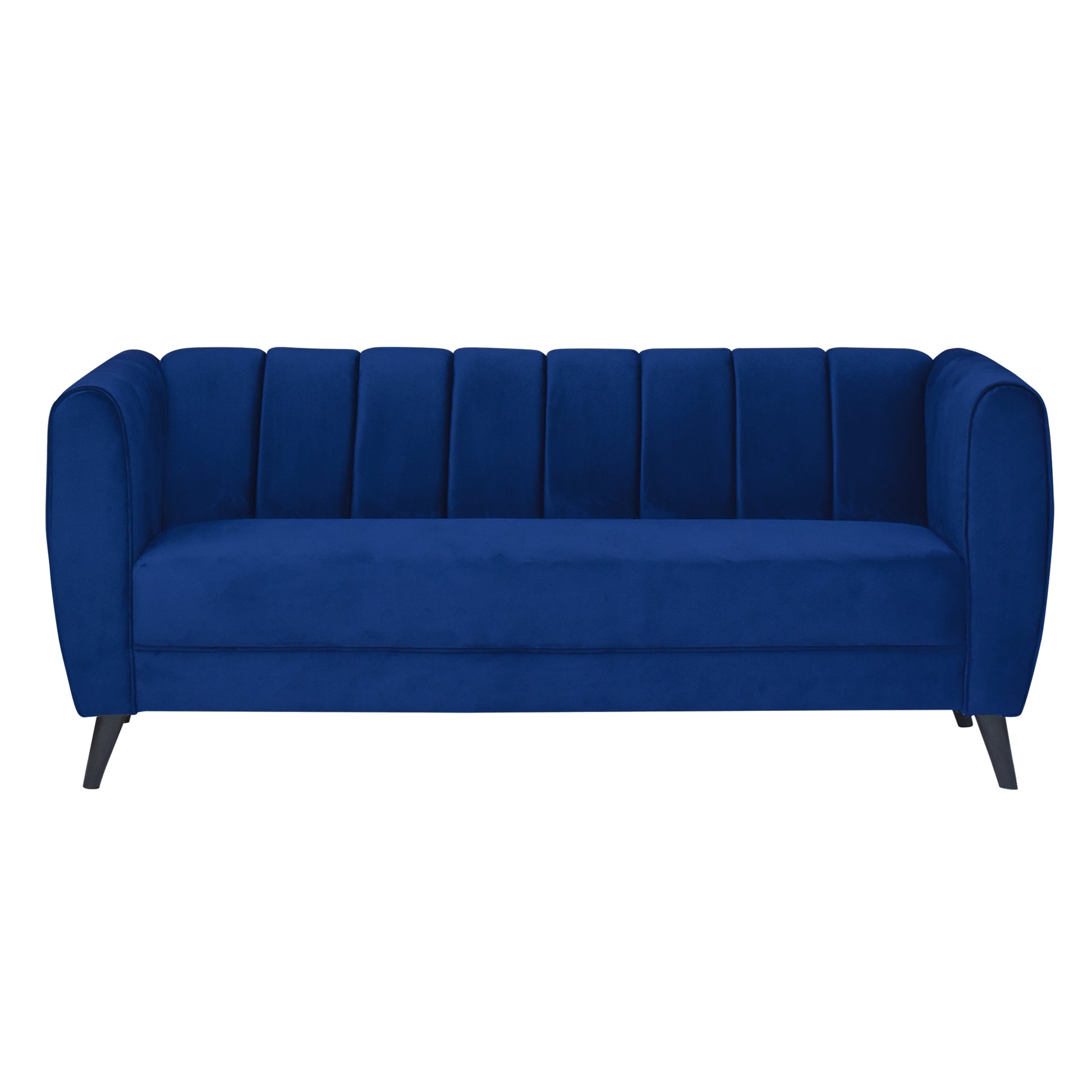 Cleo Quilted Back Velvet Fabric Sofa - Blue