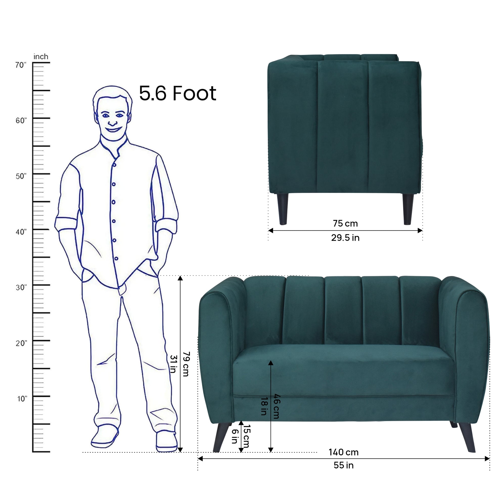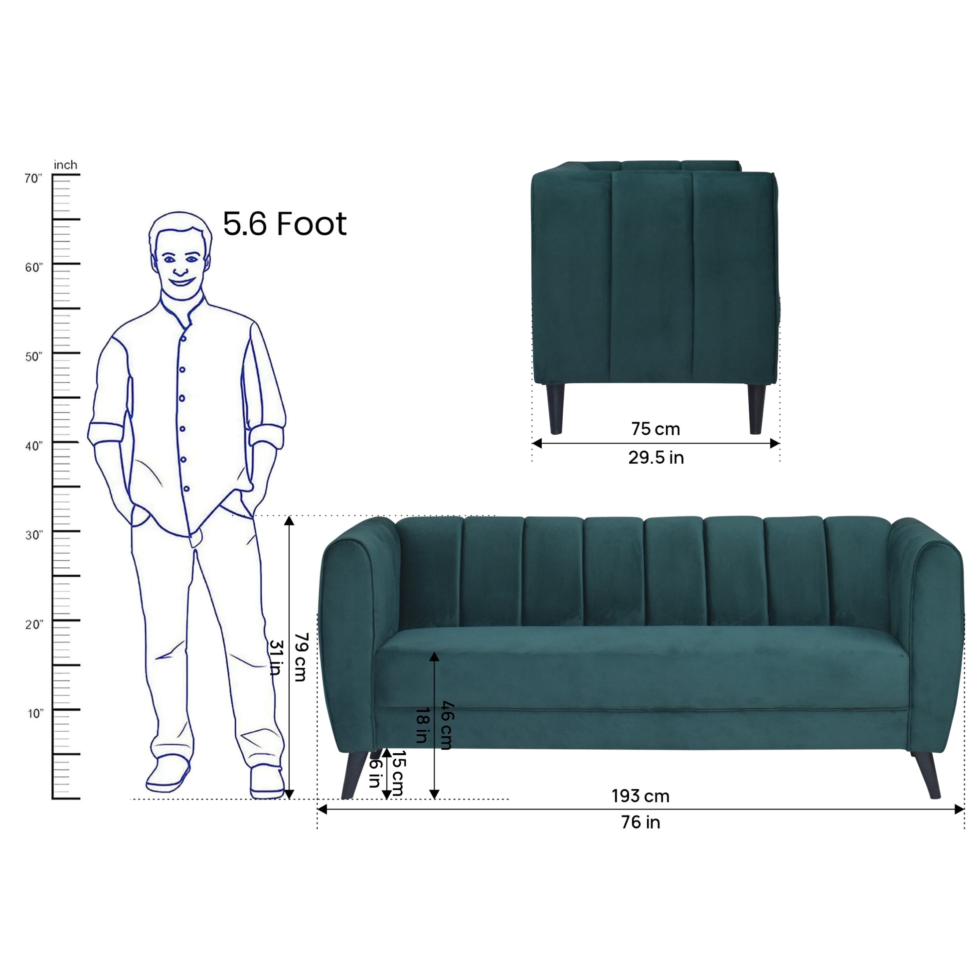 Cleo Quilted Back Velvet Fabric Sofa - Green