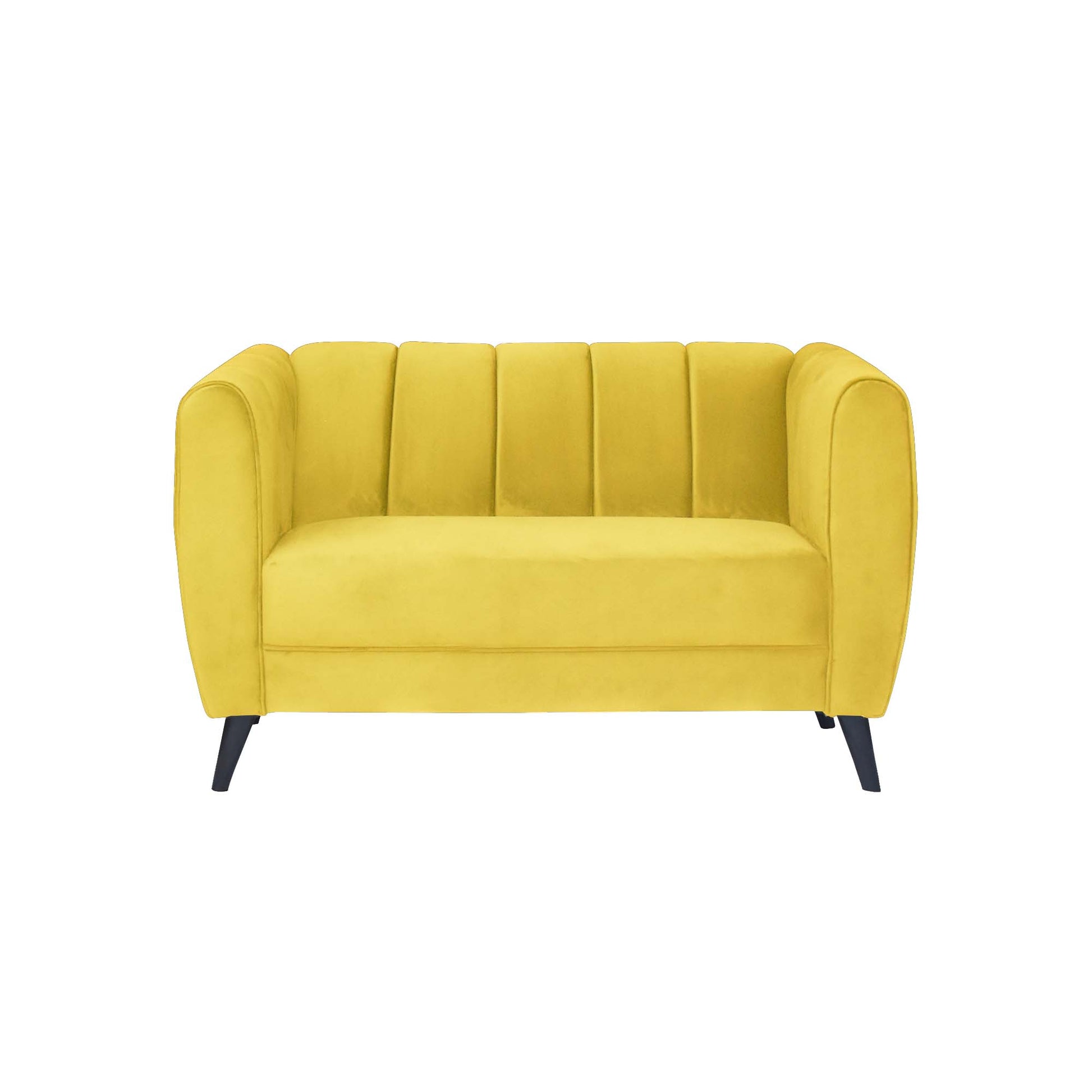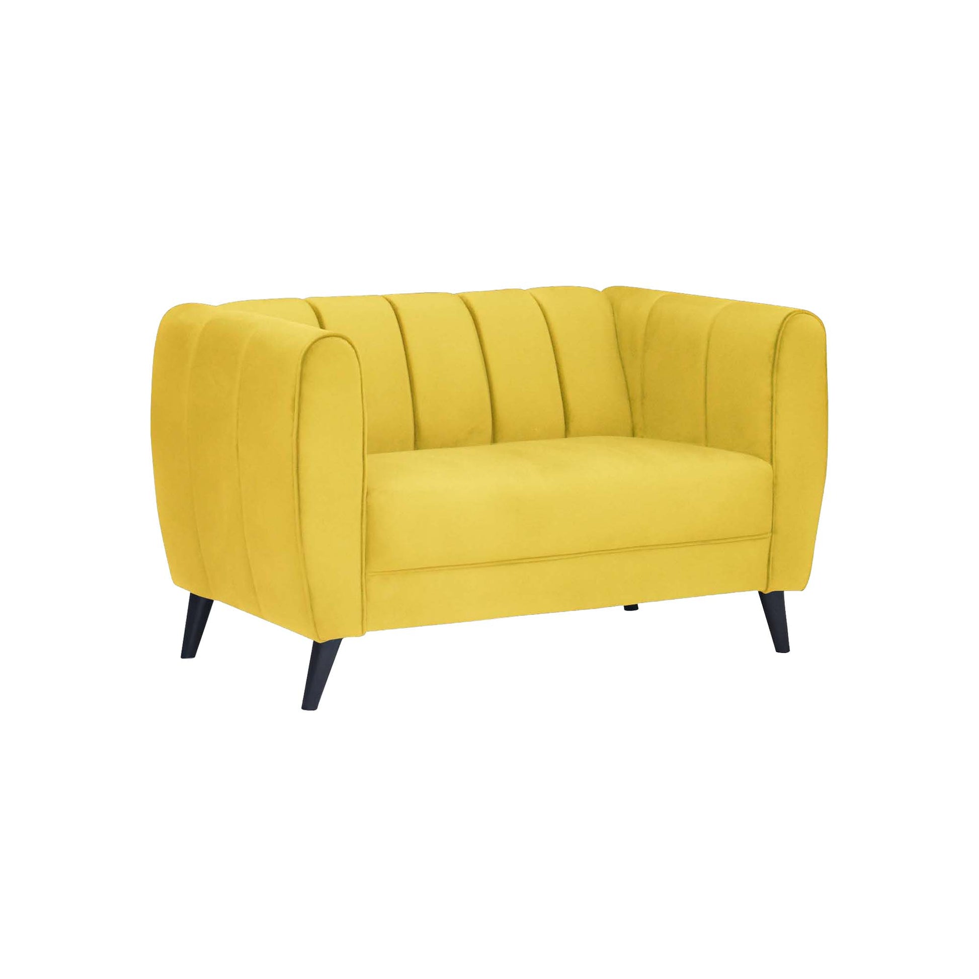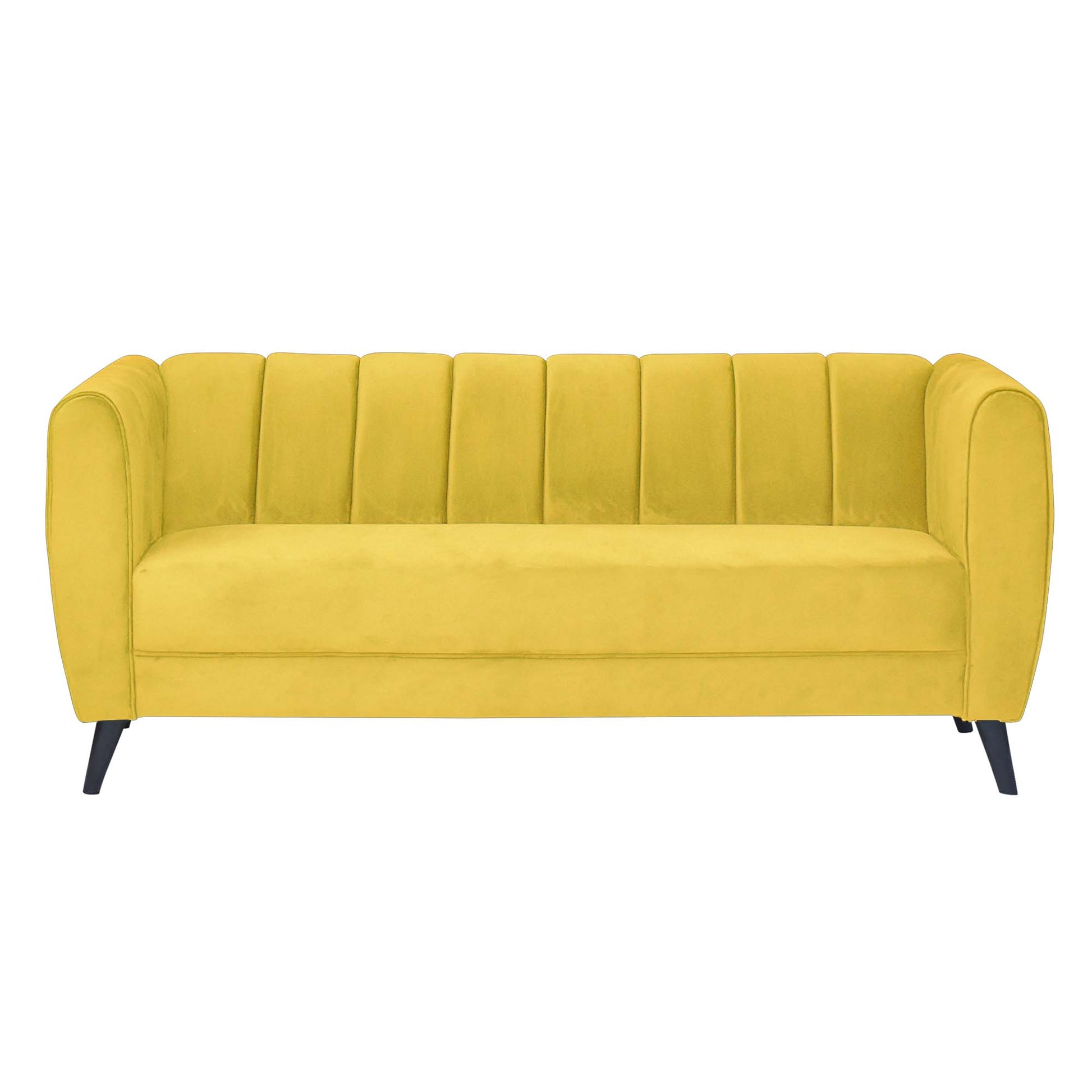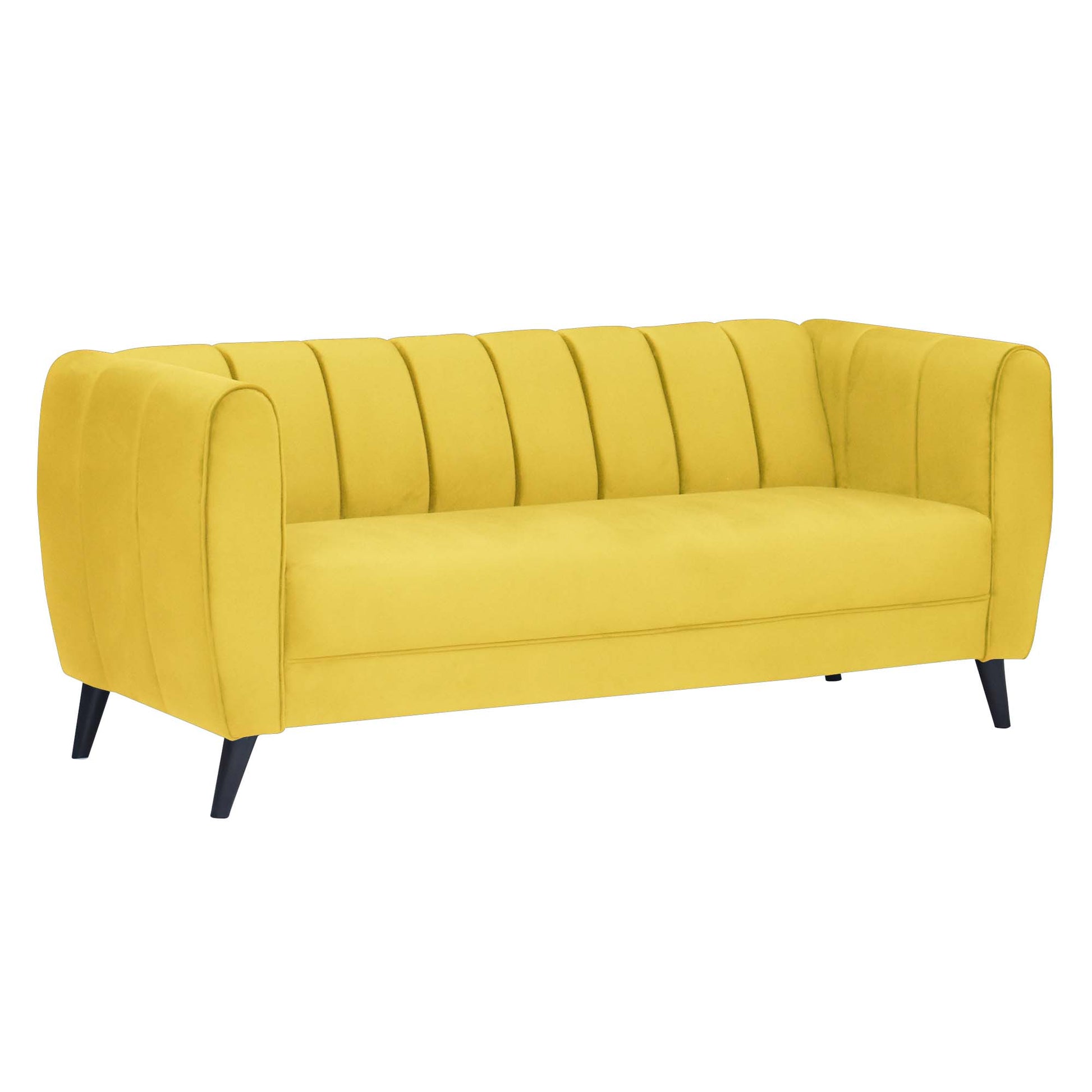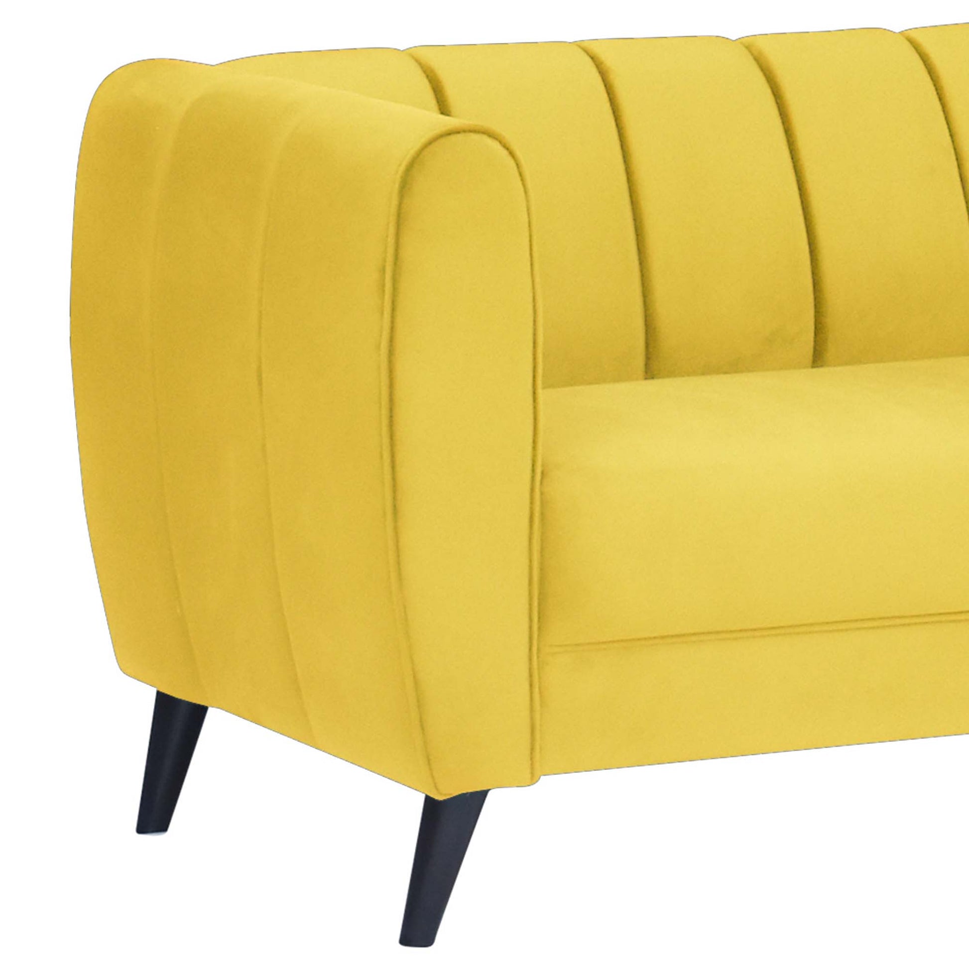 Cleo Quilted Back Velvet Fabric Sofa - Yellow
