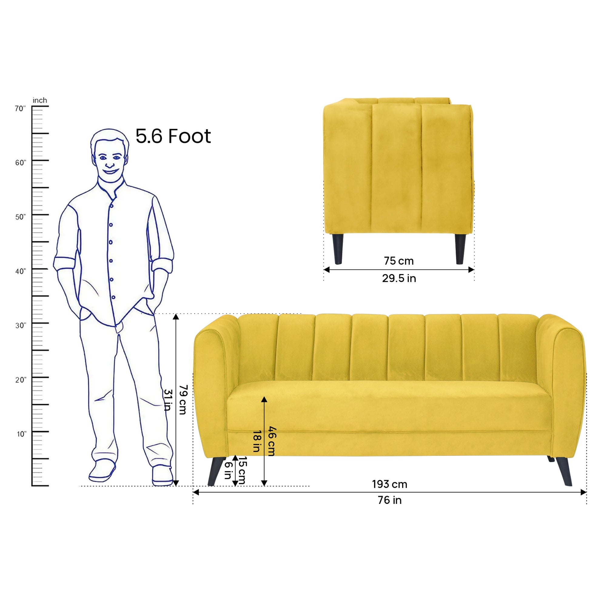 3 Seater : 76L x 29.5W x 31H (cms)