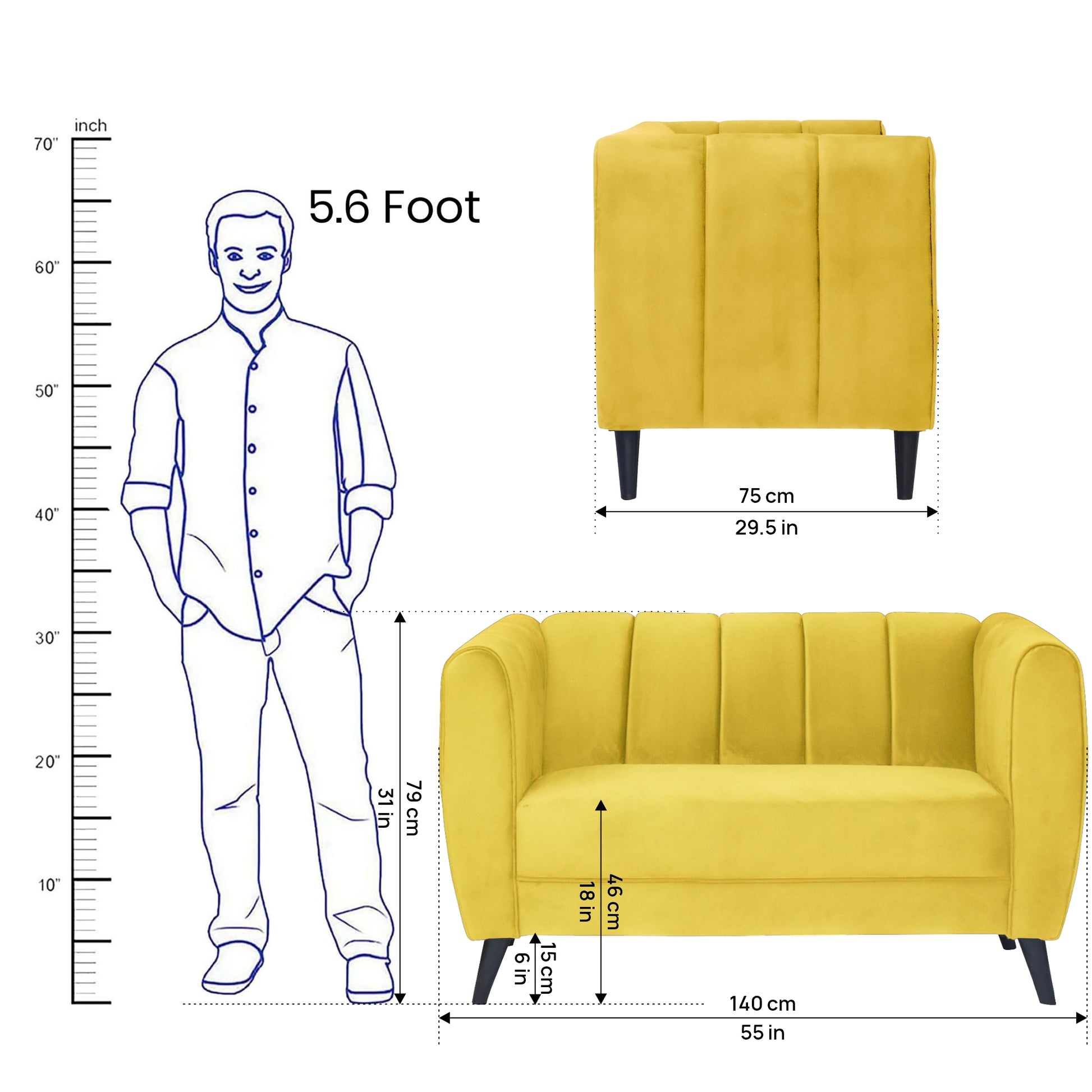 2 Seater : 55L x 29.5W x 31H (cms)