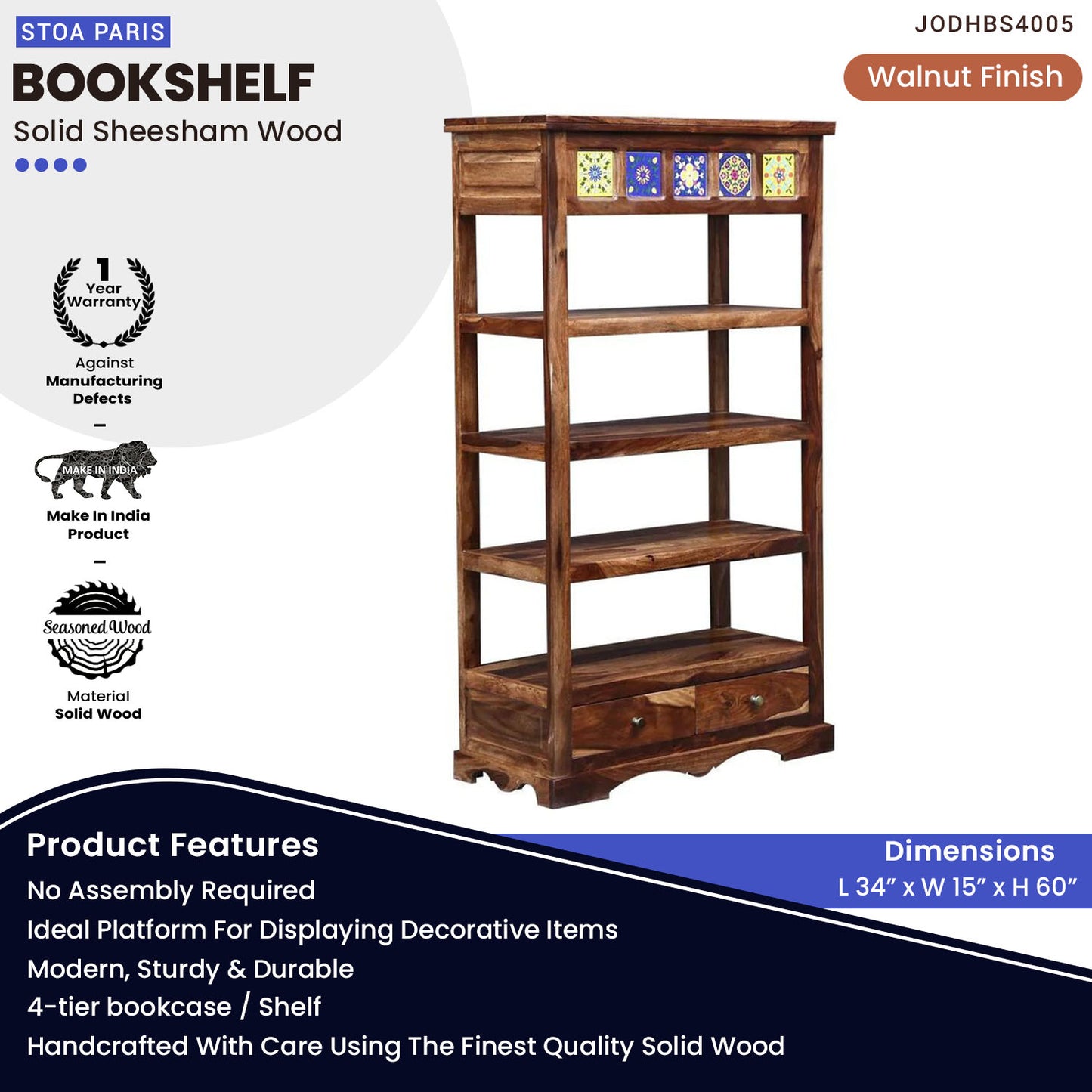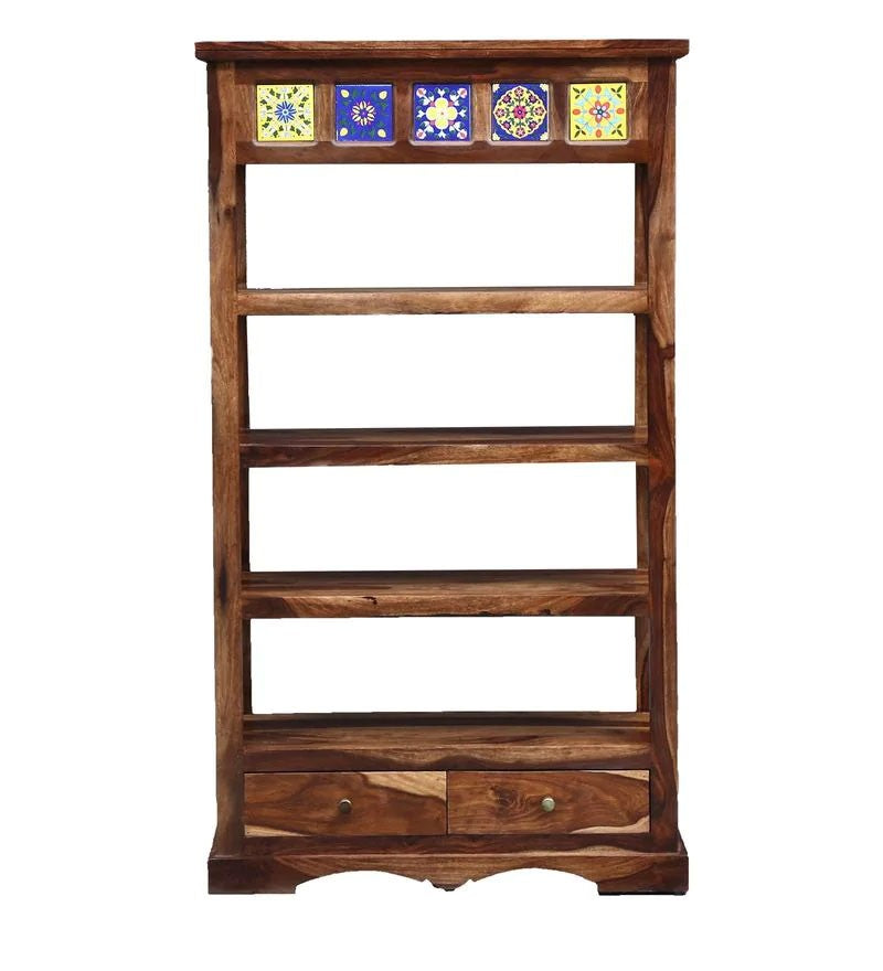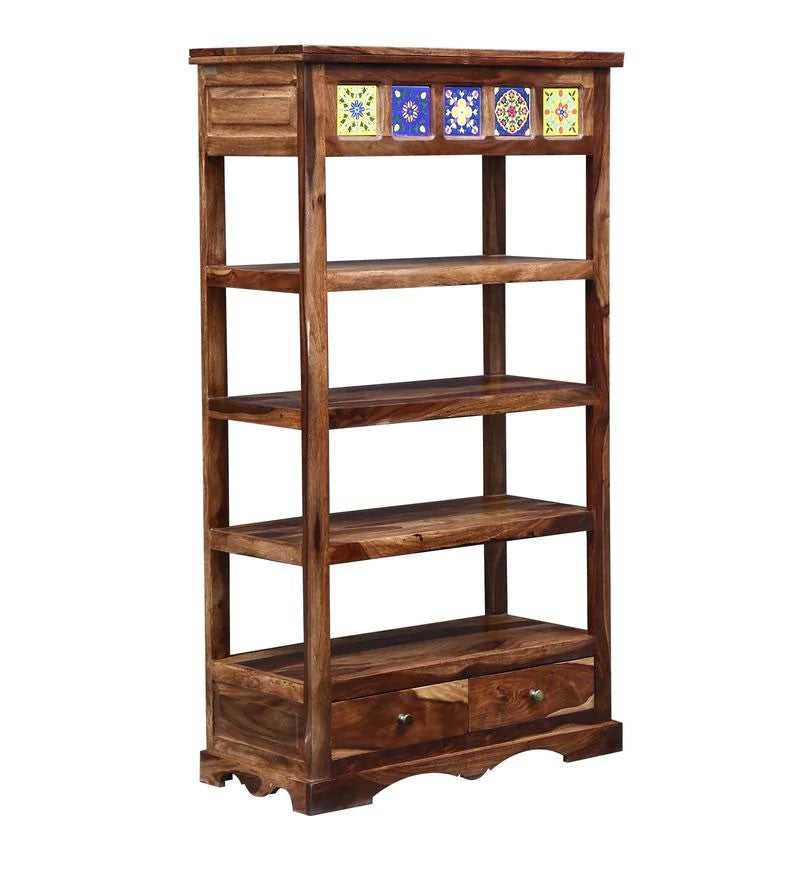 Corbin Bookshelf Storage Organizer With Two Drawers - Natural Polish