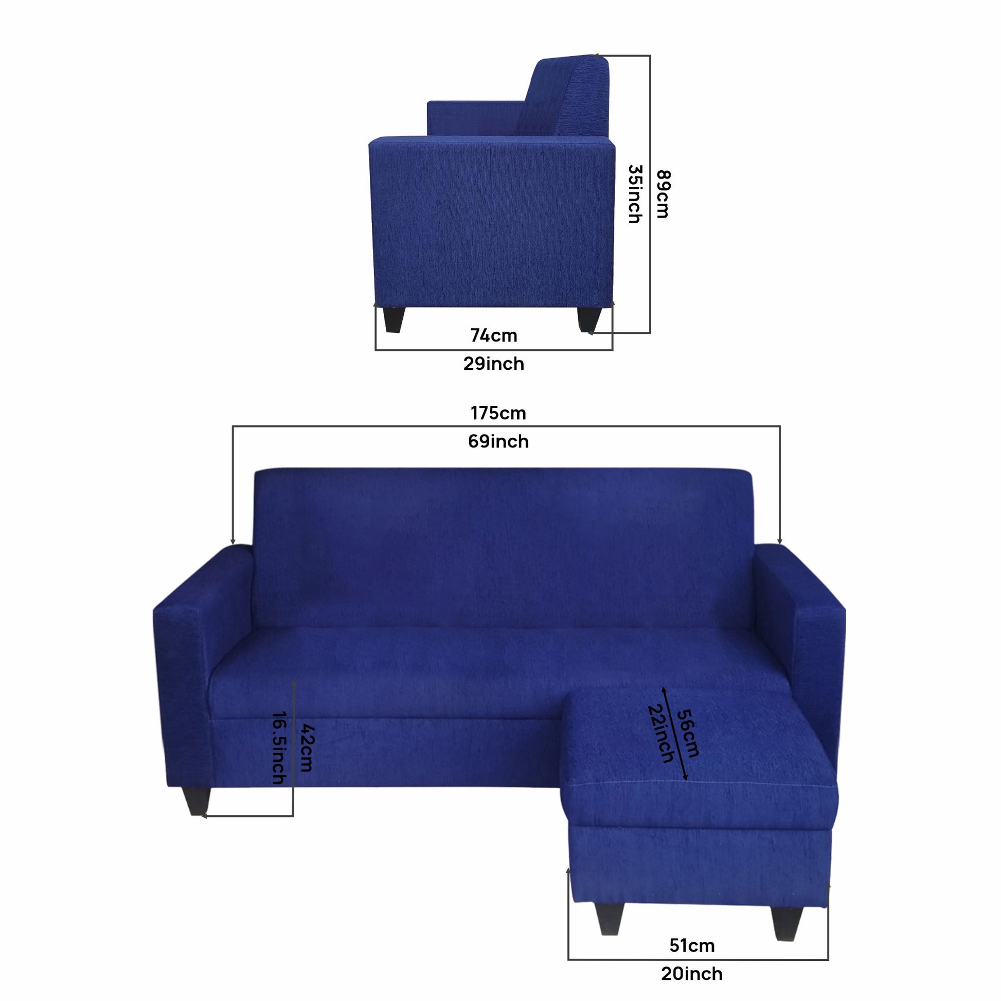 Cornelia Fabric 4 Seater (3 Seater + Ottoman) Sofa - Blue