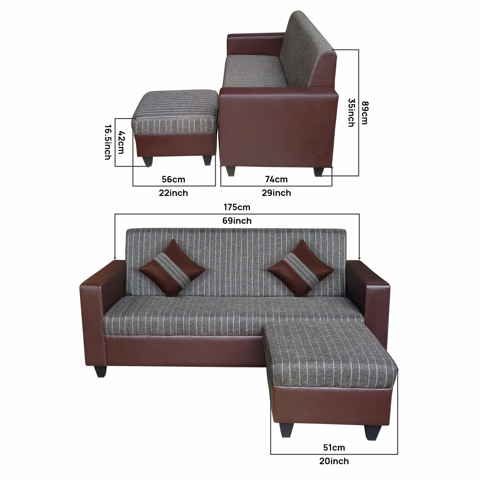 Cornelia Fabric 4 Seater (3 Seater + Ottoman) Sofa - Brown