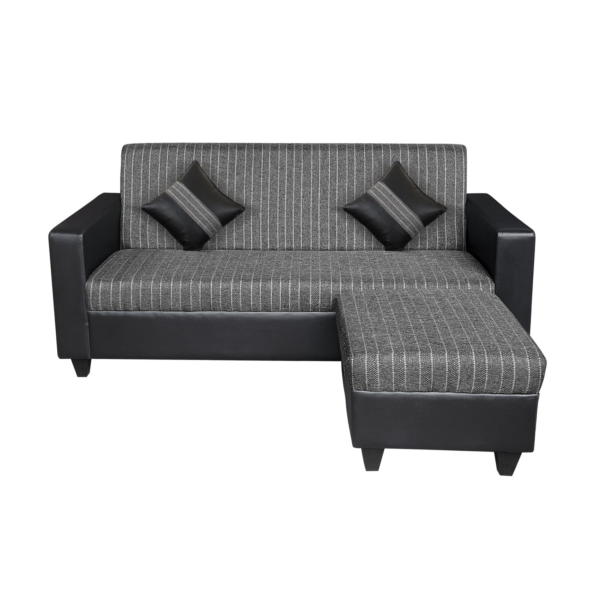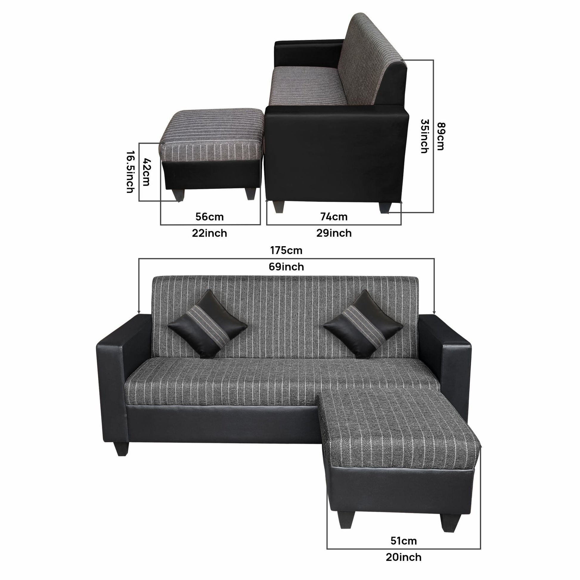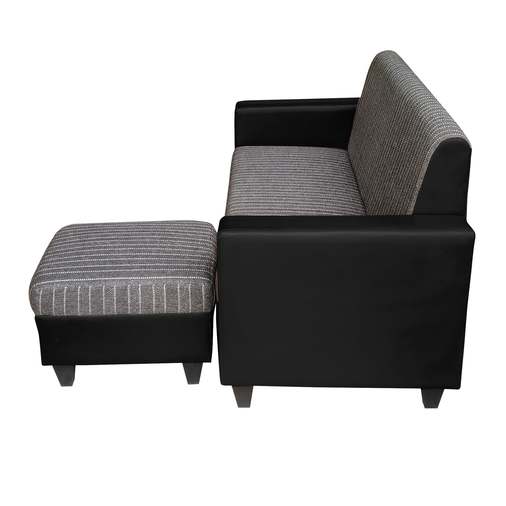 Cornelia Fabric 4 Seater (3 Seater + Ottoman) Sofa - Grey & Black