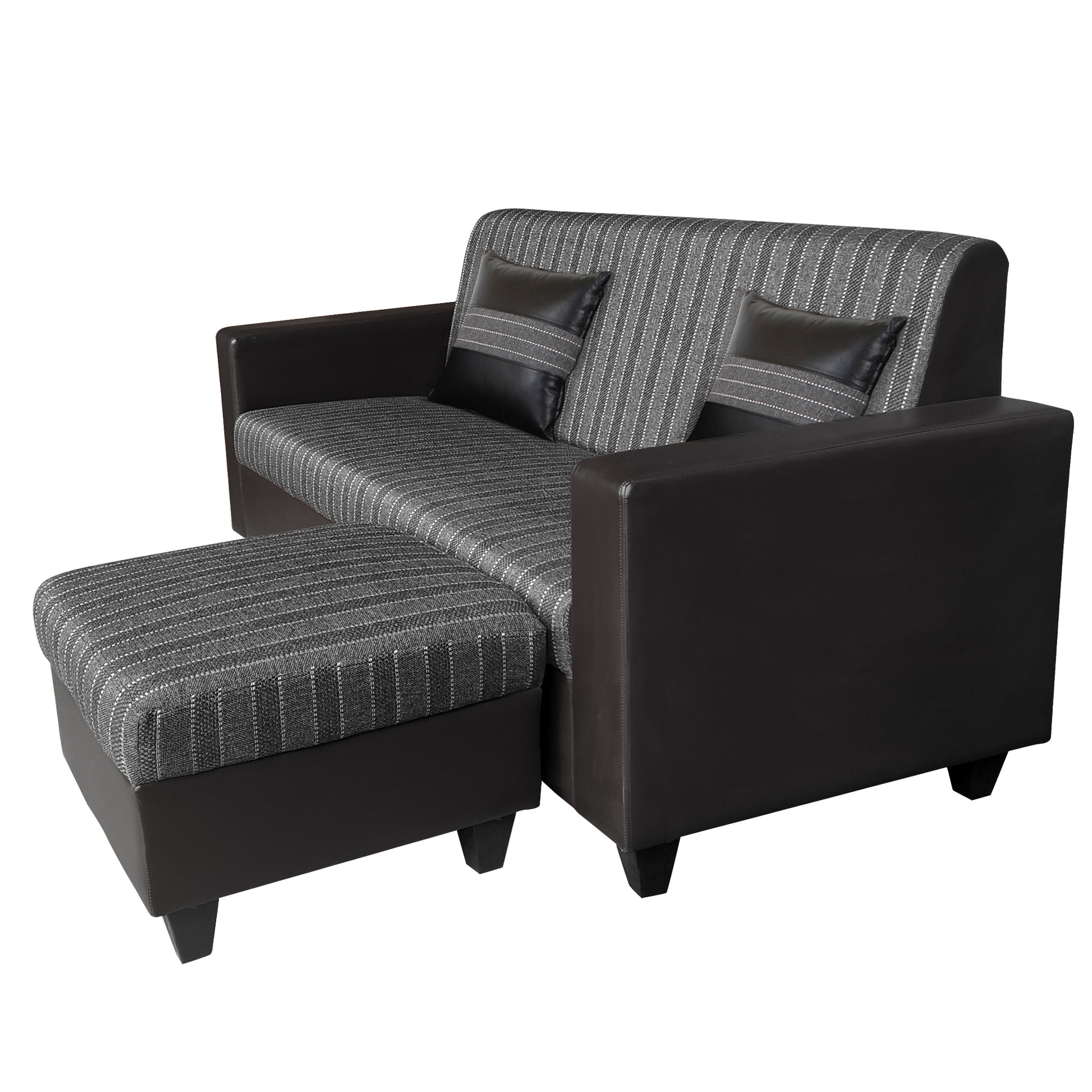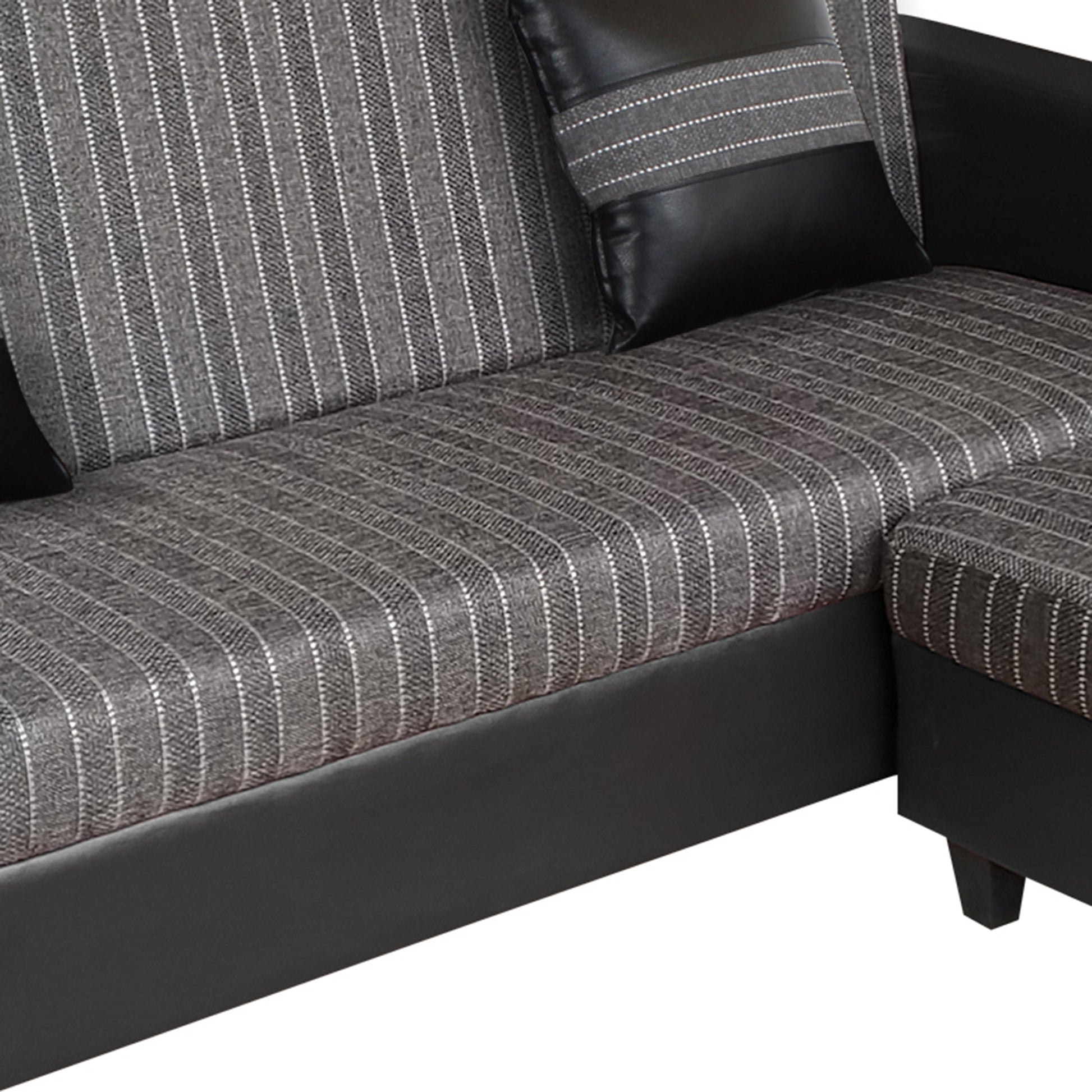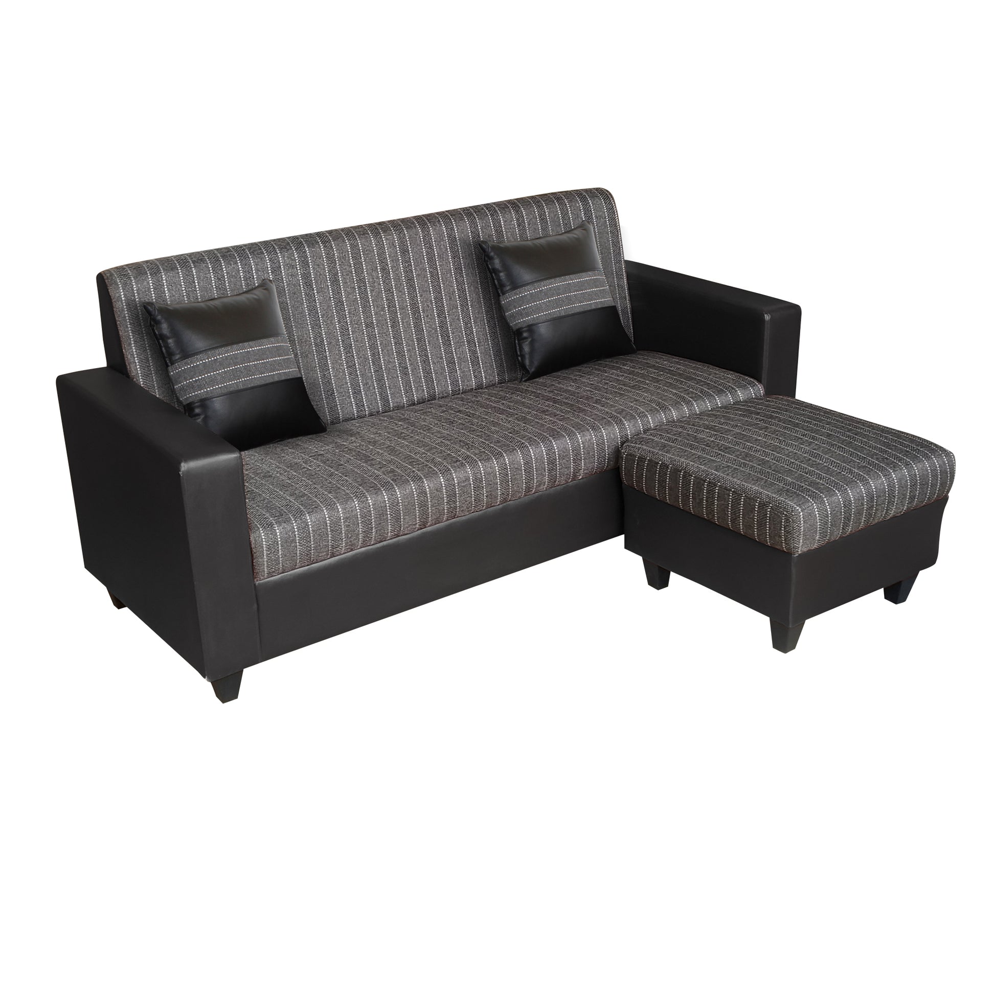 Cornelia Fabric 4 Seater (3 Seater + Ottoman) Sofa - Grey & Black