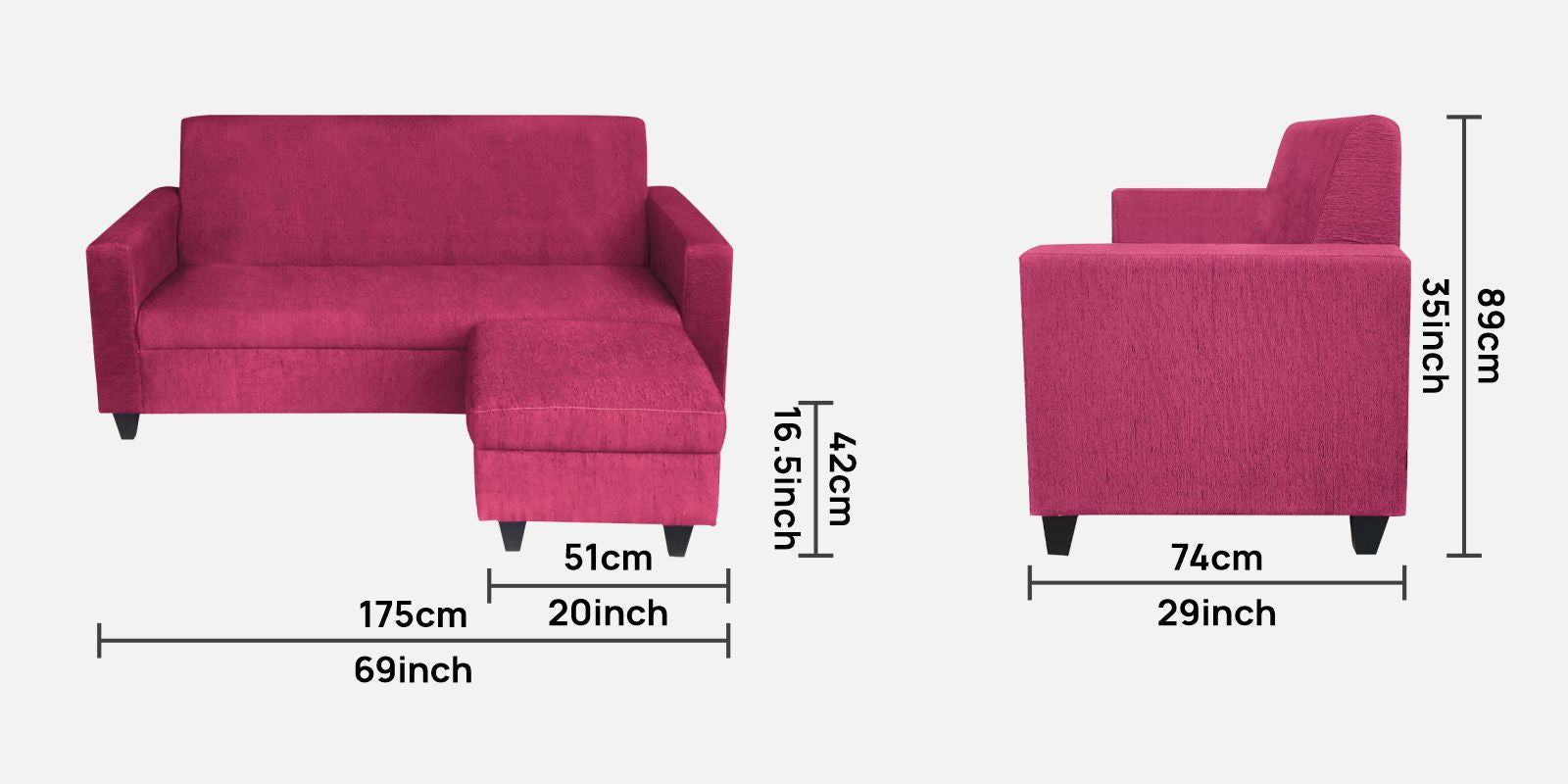 - Product Dimensions : 69L x 29W x 35H (cms)