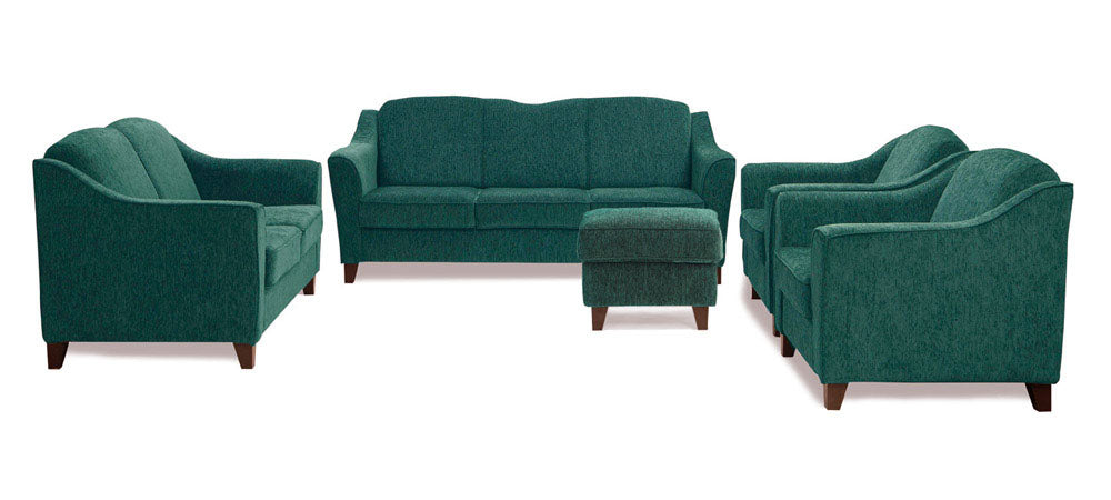 Crescent Fabric Sofa 3-2-1-1 Sofa + Pouf Set - Green