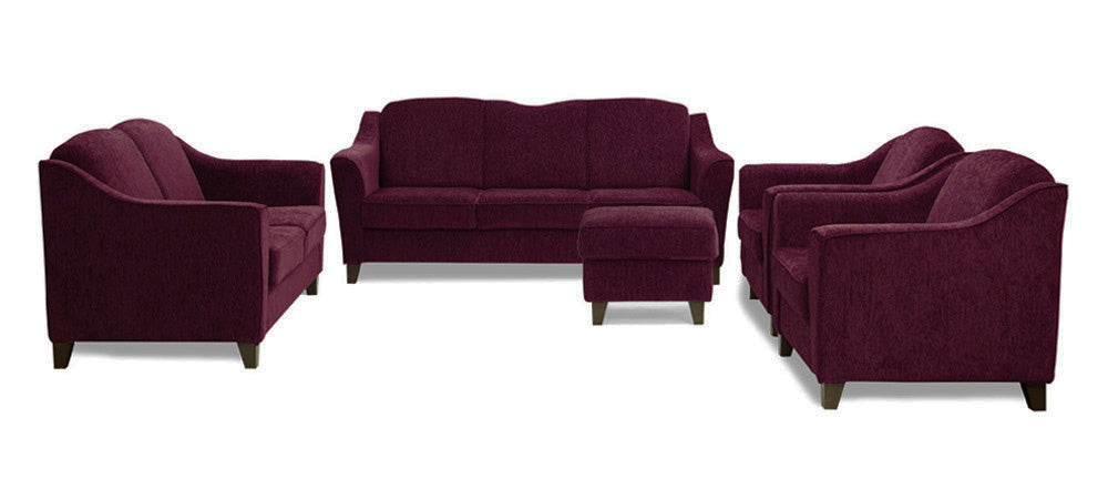 Cresecent - Dark Berry Fabric Sofa (3-2-1-1- Pouffe Sofa Combo)