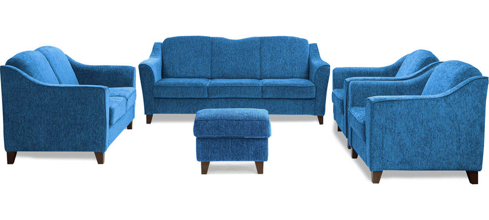 Cresecent - Persian Blue Fabric Sofa (3-2-1-1- Pouffe Sofa Combo)