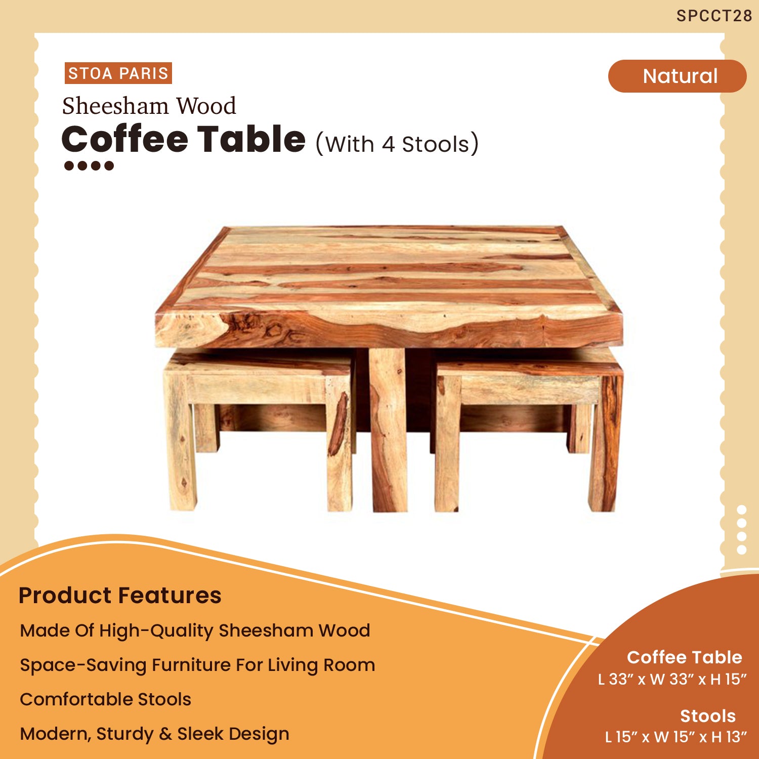 Cypher - Sheesham Wood Coffee Table With 4 Stools - Natural Polish