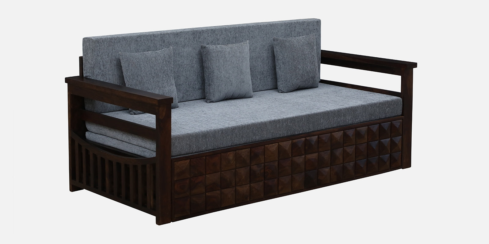 Dash -Sheesham Wood Pull Out 3 Seater Sofa Cum Bed In Provincial Teak With Cushions