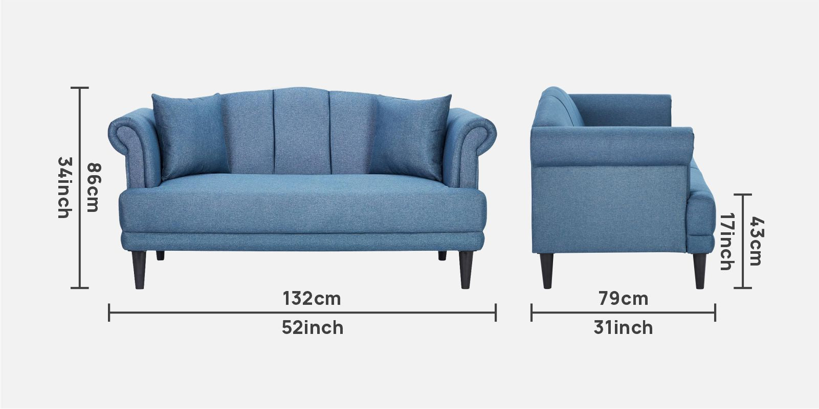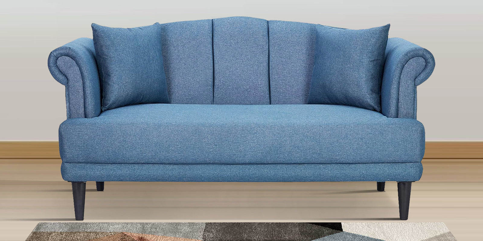 Davian Quilted Back 2 Seater Fabric Sofa - Blue