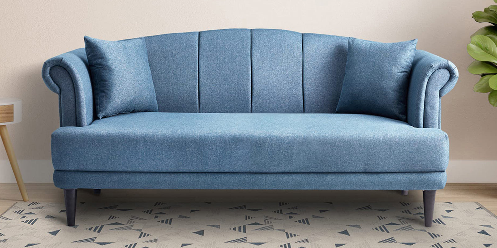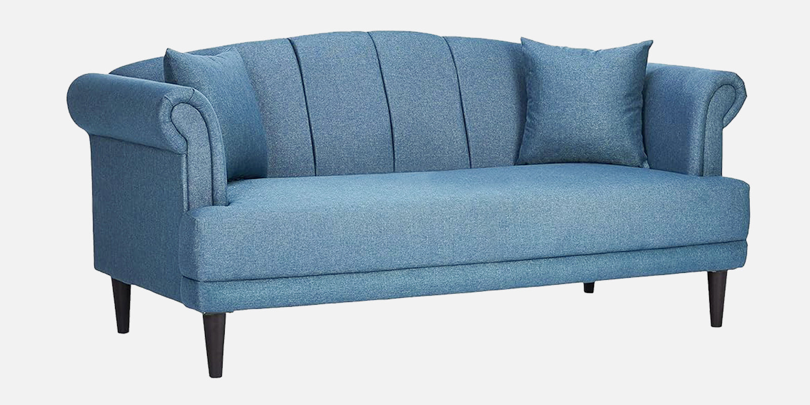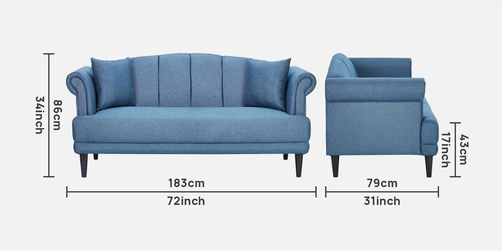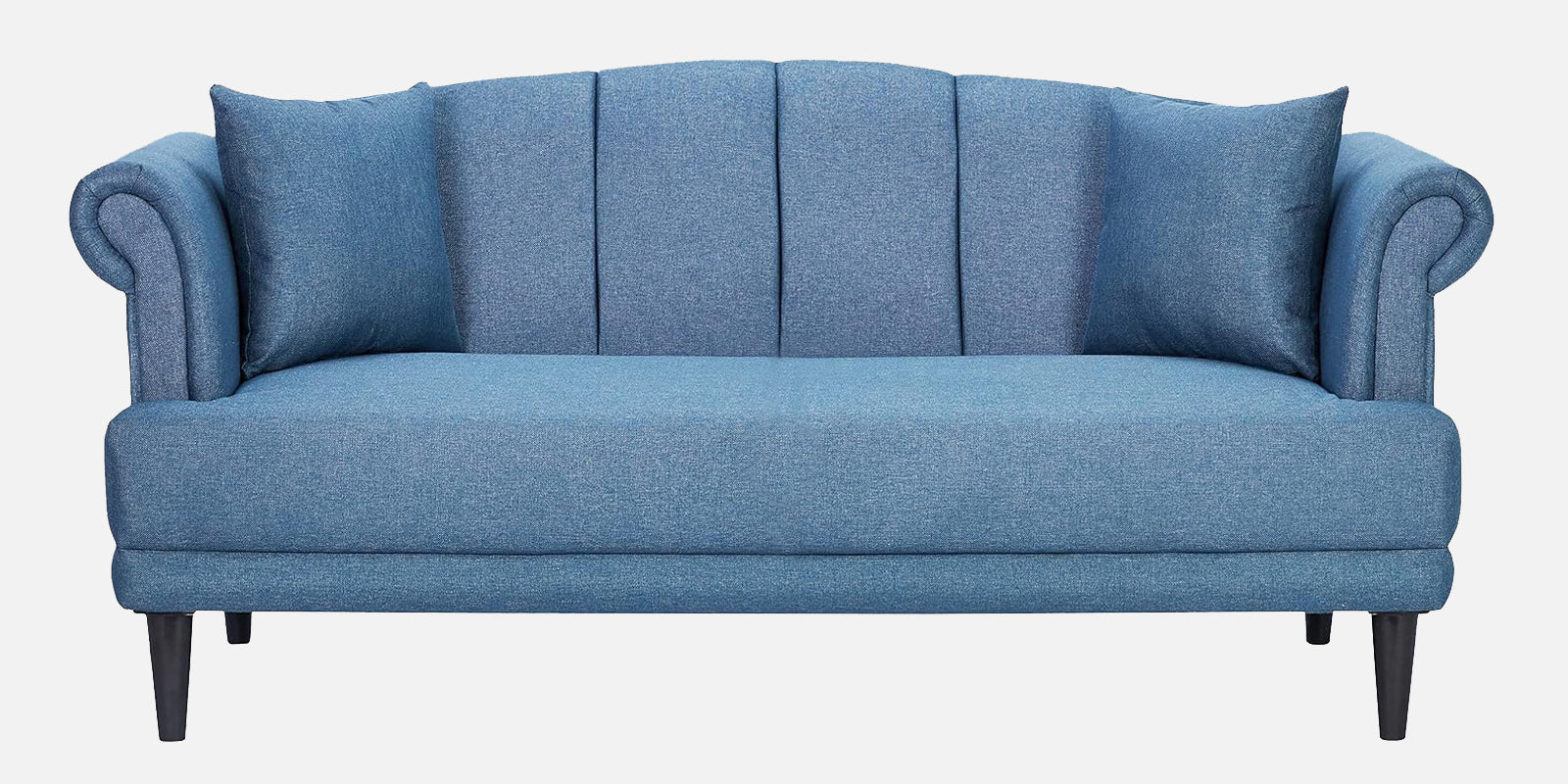 Davian Quilted Back 3 Seater Fabric Sofa - Blue