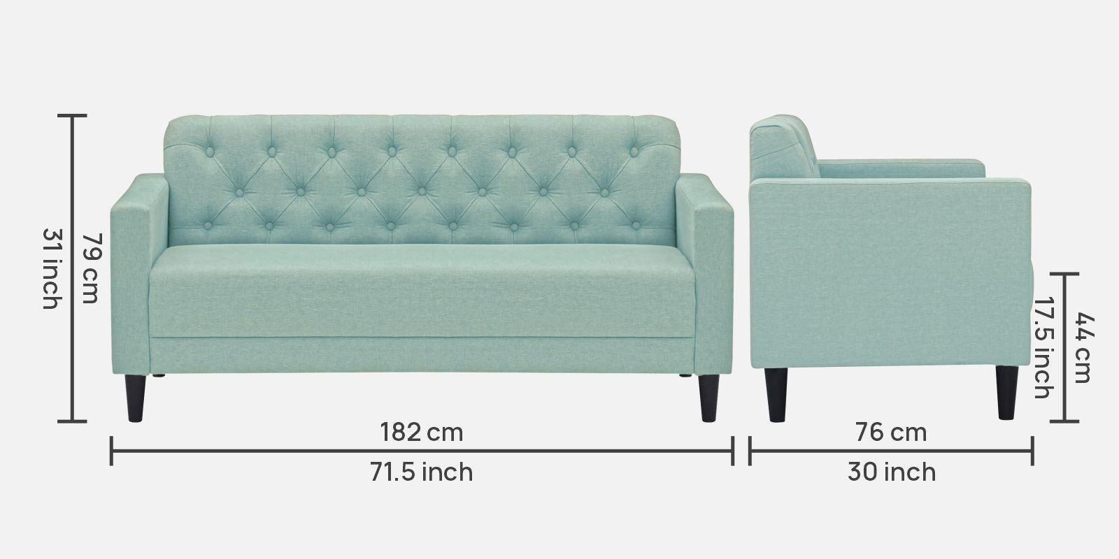 3 Seater : 71.5L x 30W x 31H (cms)