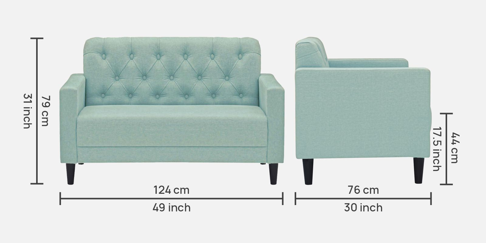 2 Seater : 49L x 30W x 31H (cms)