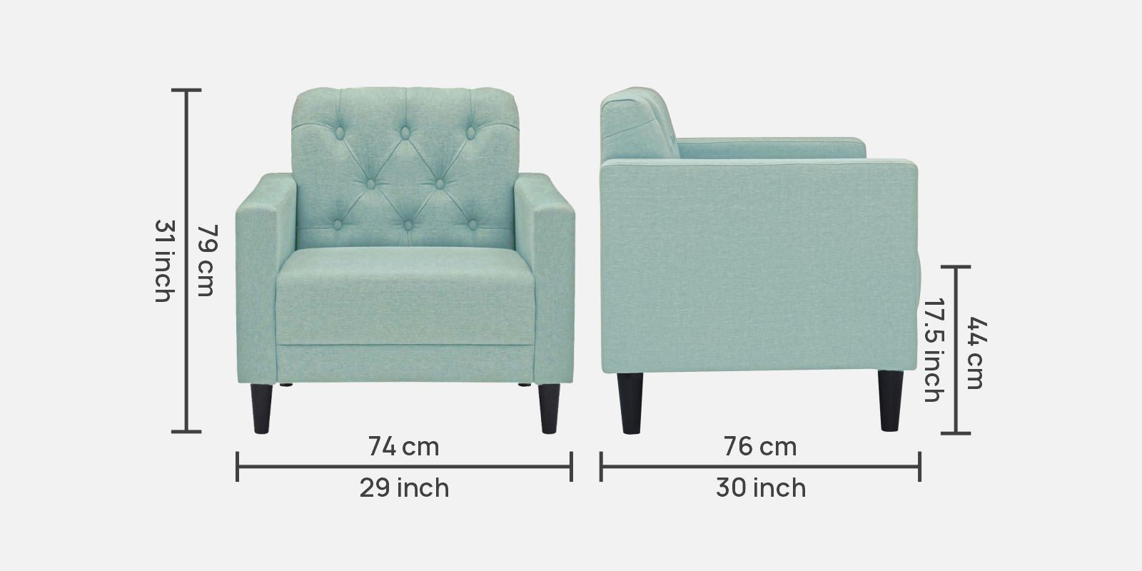 1 Seater : 29L x 30W x 31H (cms)