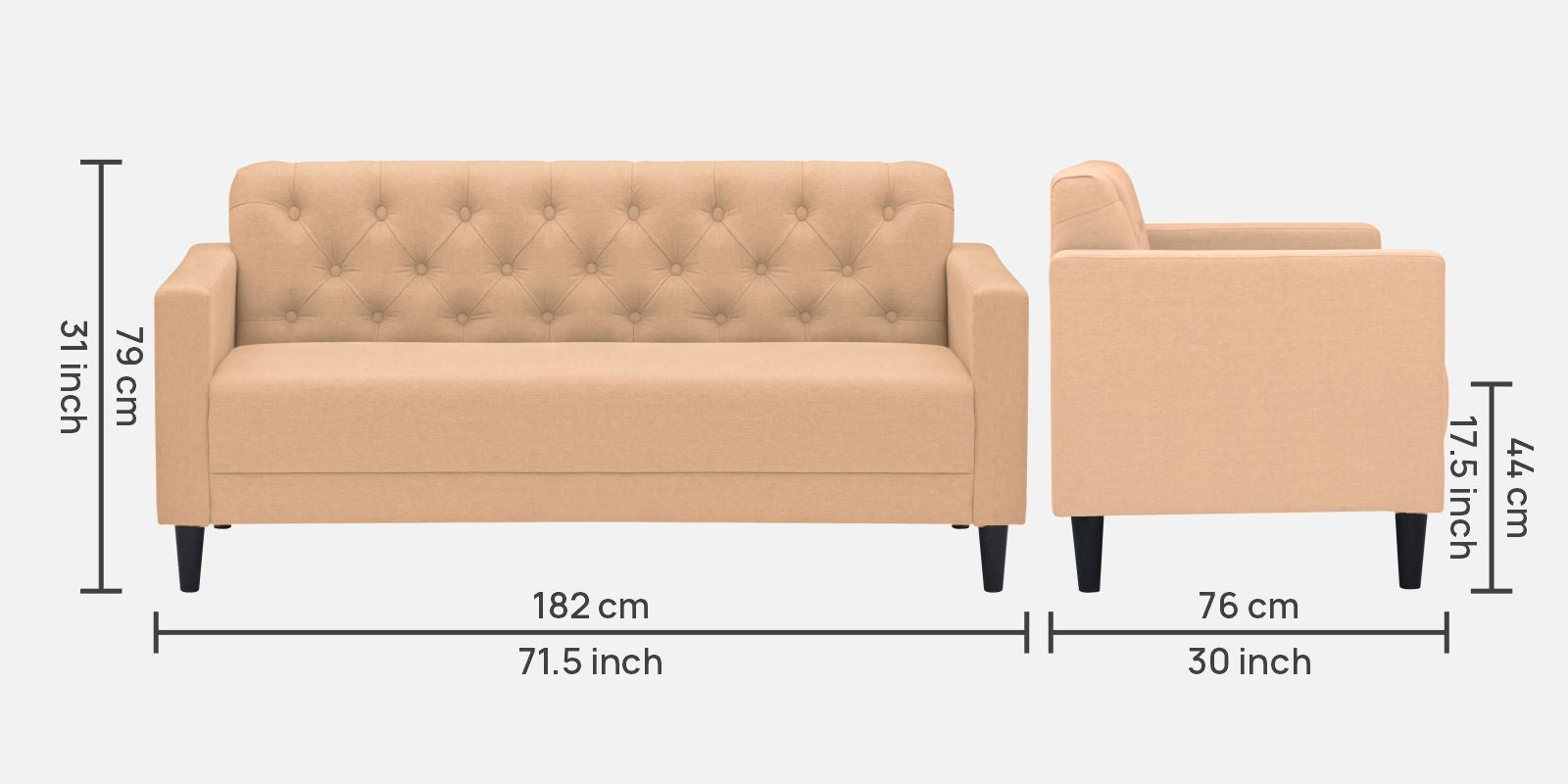 3 Seater : 71.5L x 30W x 31H (cms)