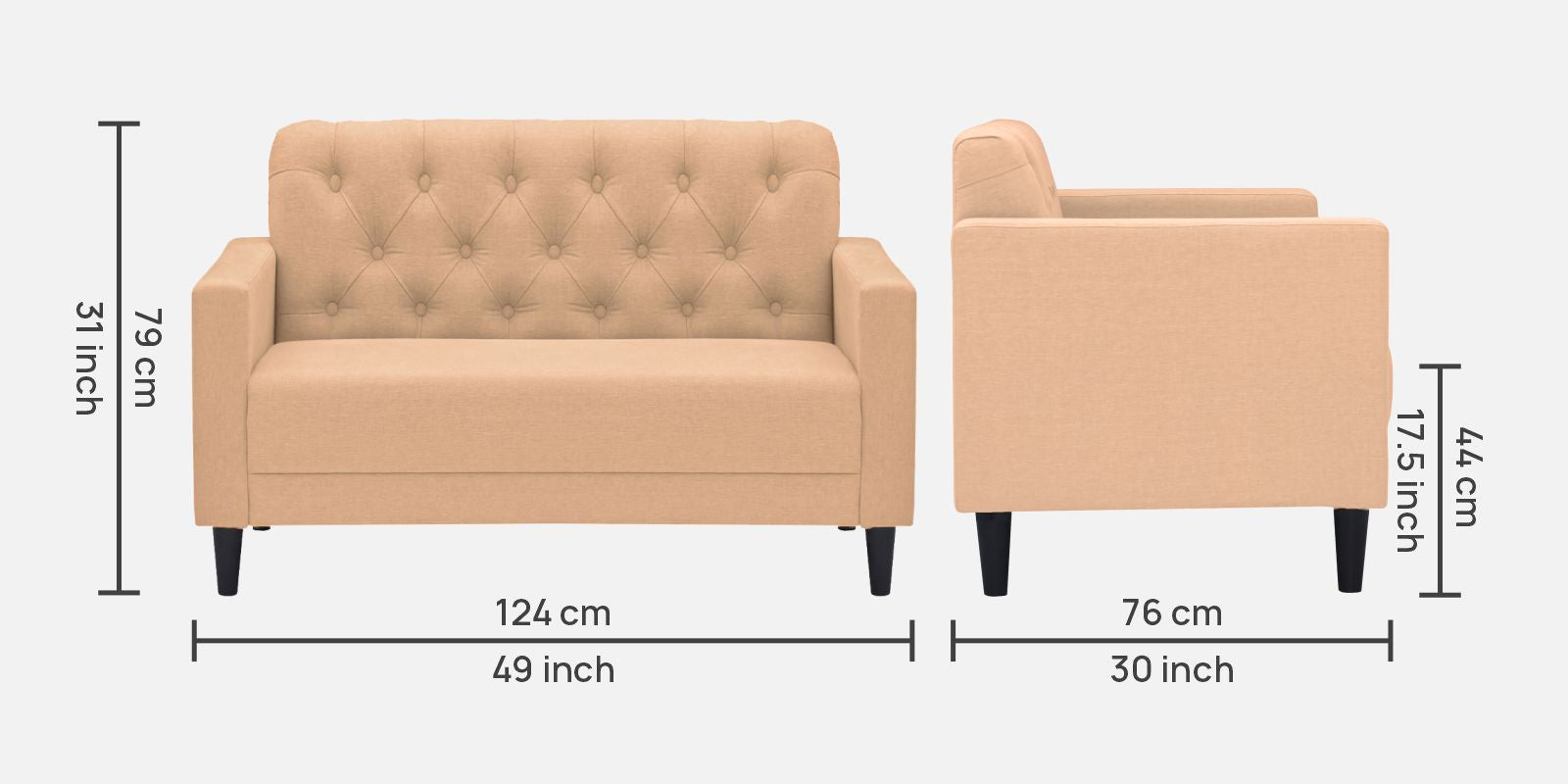 2 Seater : 49L x 30W x 31H (cms)