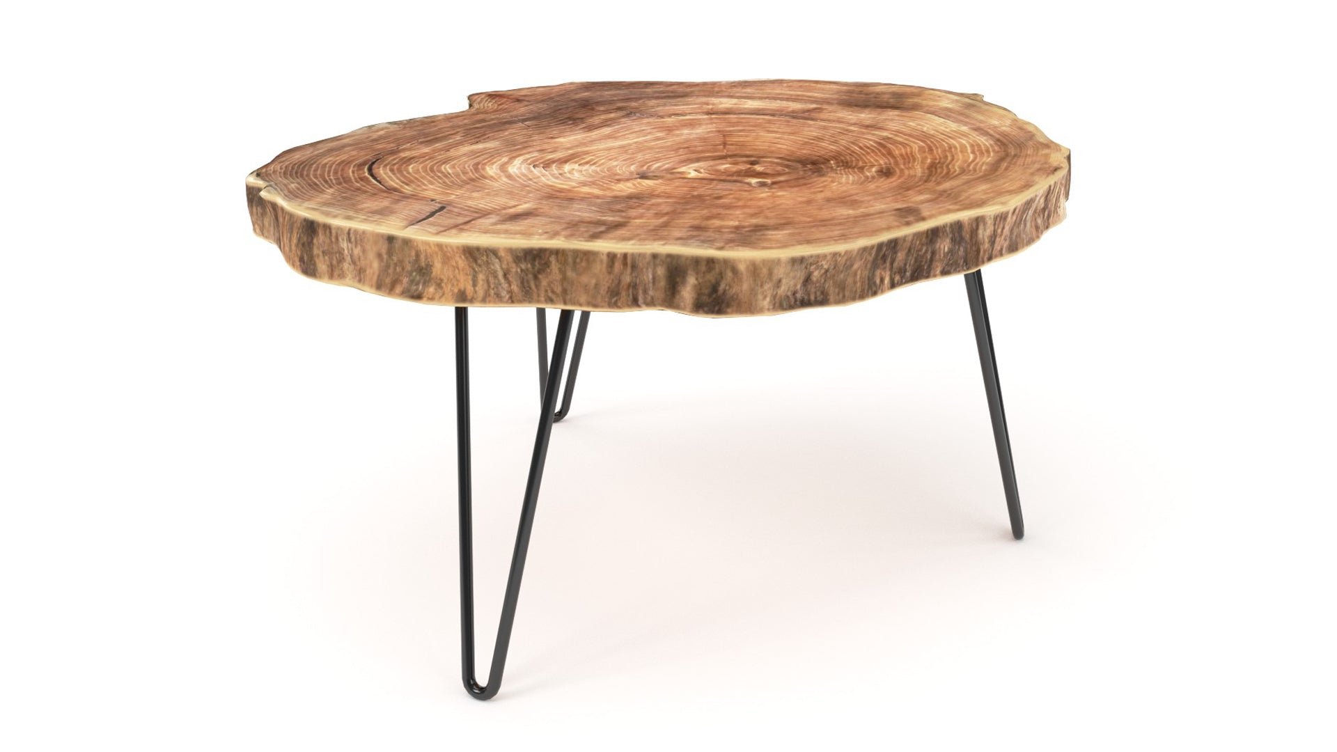 Galeno - Coffee Table With Metal Legs & Raw Wood Top In Distress Finish
