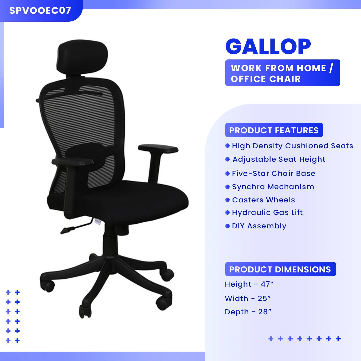 Gallop High Back Ergonomic Chair For Work From Home & Office - Black